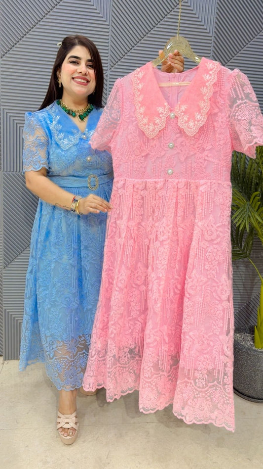 BEAUTIFUL BOW DRESS WITH PEARL WORK GGR4131