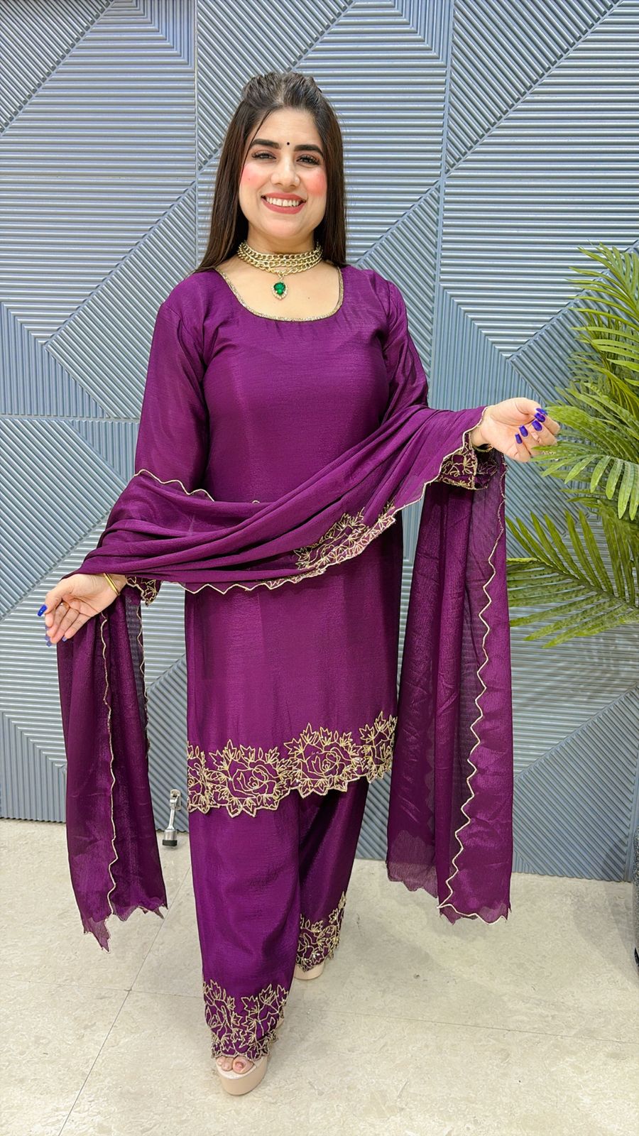 This BEAUTIFUL 3 PIECE SET CUT DANA WORK IN KURTA ,BOTTOM AND DUPATTA (kurta length 37 ,bottom 40-41) is perfect for the season . The 3 PCS SUIT beautifully to create a versatile and stylish outfit. your summer wardrobe with this luxurious addition, adding a touch of sparkle and charm to any occasion .