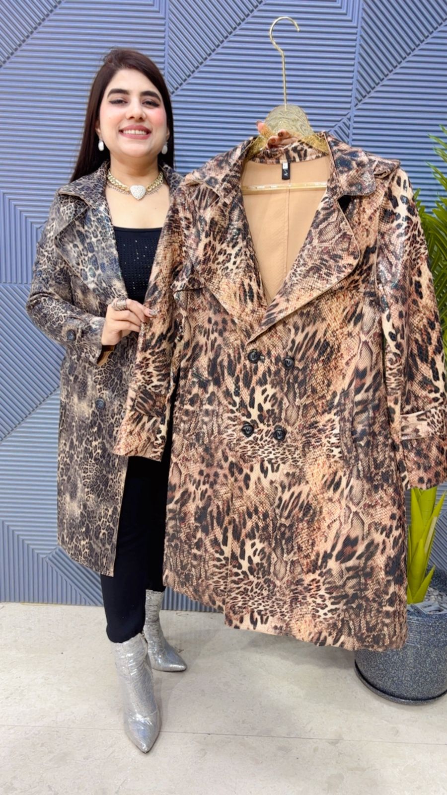 This BEAUTIFUL WINTERWEAR SUEDE LEATHER BLAZER WITH BELT AND SNECK PRINT (LENGTH: 37) Approx is perfect for the season . The BLAZER DRESS beautifully to create a versatile and stylish outfit. your WINTER wardrobe with this luxurious addition, adding a touch of sparkle and charm to any occasion. ( DELIVERY DAYS WITHIN: 10-12 DAYS)