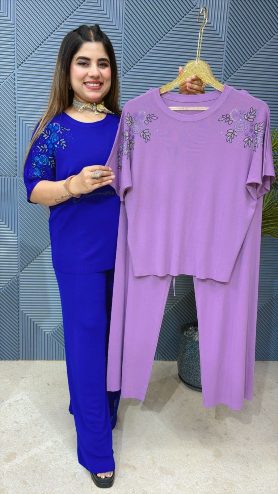 This Beautiful Co-Ord Set With Little Rose is the perfect addition to your summer wardrobe. Made with knitted, stretchable material, it offers both comfort and style. The delicate little rose detail adds a touch of elegance to this versatile set. Upgrade your fashion game with this must-have co-ord set.