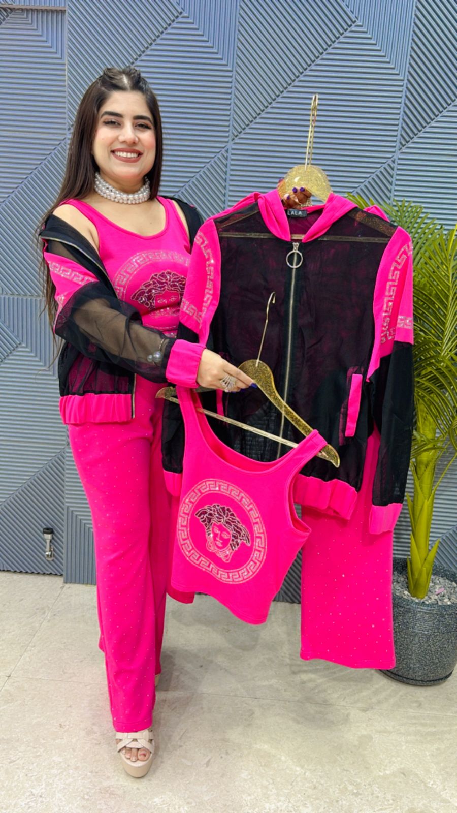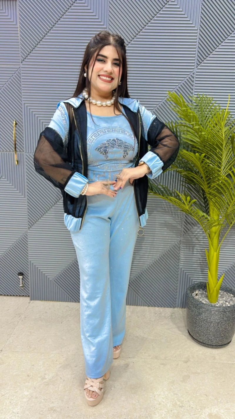 This BEAUTIFUL CO-ORD SET WITH SWAROVSKI WORK ( TOP LENGTH: 25 BOTTOM LENGTH;39-40) is perfect for the season . THE CO-ORD SET beautifully to create a versatile and stylish outfit. your summer wardrobe with this luxurious addition, adding a touch of sparkle and charm to any occasion.