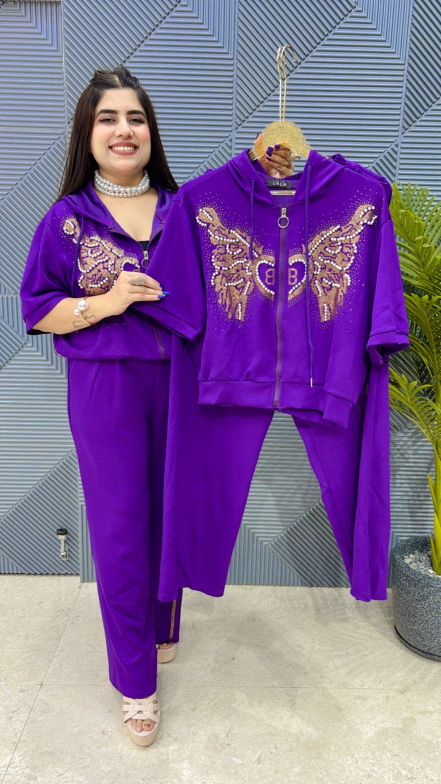 This BEAUTIFUL CO-ORD SET WITH PEARL WORK ( TOP LENGTH: 21, BOTTOM LENGTH;40) is perfect for the season . THE CO-ORD SET beautifully to create a versatile and stylish outfit. your summer wardrobe with this luxurious addition, adding a touch of sparkle and charm to any occasion.