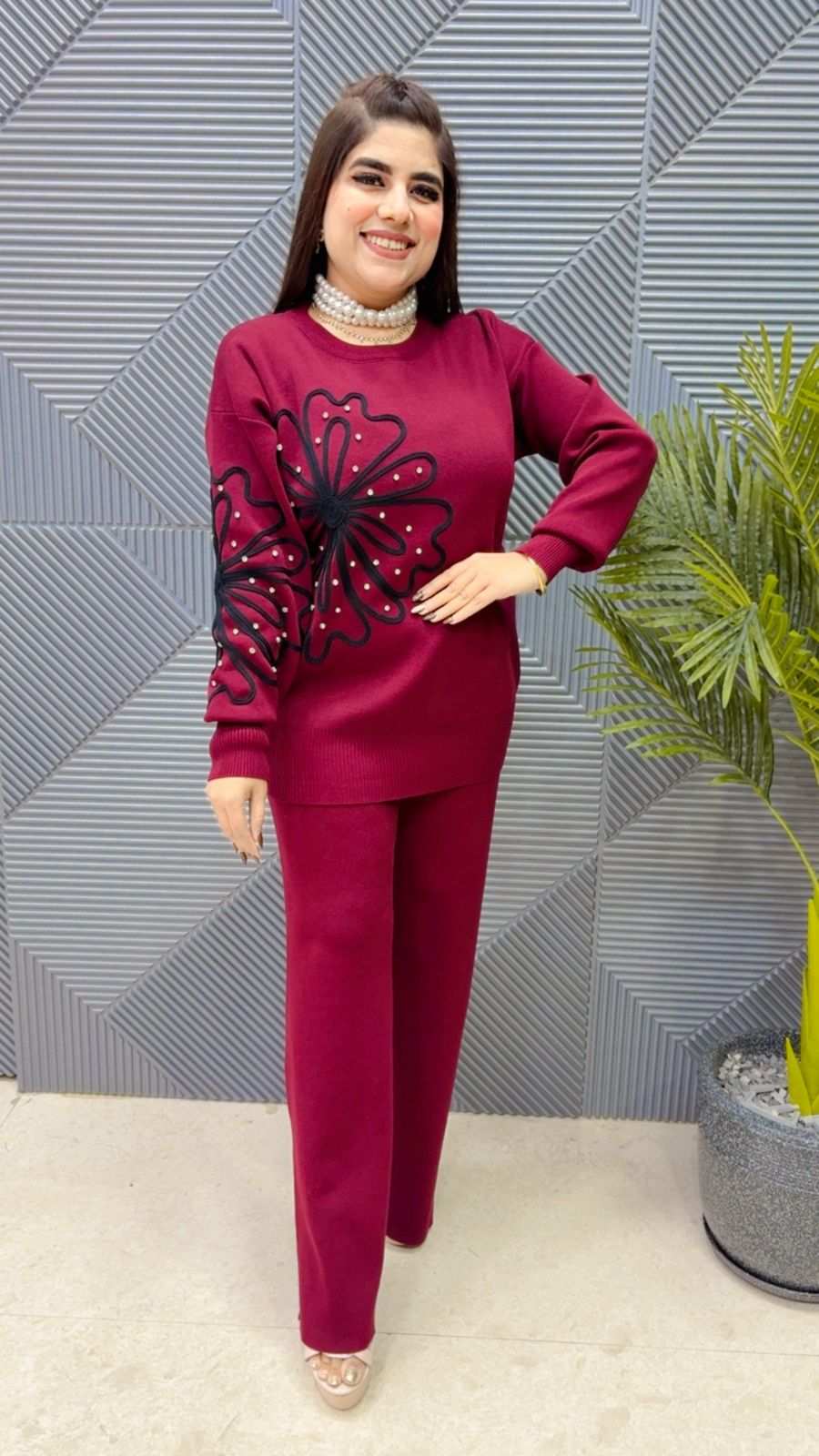 This BEAUTIFUL CORD SET (TOP LENGTH: 26-27 BOTTOM LENGTH-40-41)(FREE SIZE STRETCHABLE) Approx is perfect for the season . ThIS CORD SET beautifully to create a versatile and stylish outfit. your WINTER wardrobe with this luxurious addition, adding a touch of sparkle and charm to any occasion.( DELIVERY DAYS WITHIN: 12-15 DAYS)