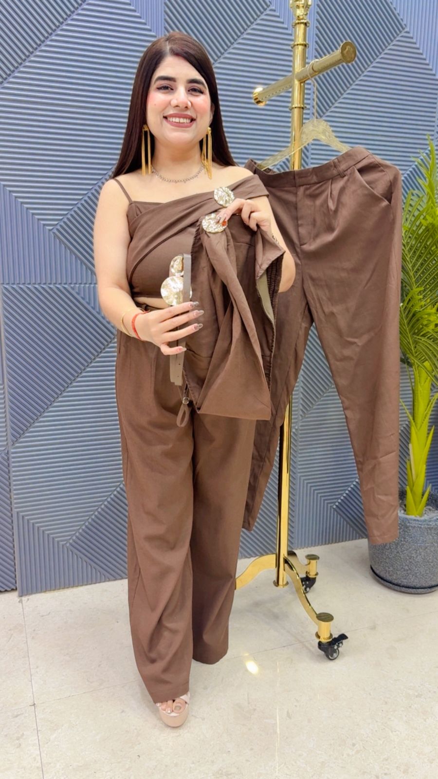 This BEAUTIFUL CORD SET WITH BELT (TOP LENGTH: 14 BOTTOM LENGTH-39)(FREE SIZE STRETCHABLE) Approx is perfect for the season . This CORD SET beautifully to create a versatile and stylish outfit. your WINTER wardrobe with this luxurious addition, adding a touch of sparkle and charm to any occasion.( DELIVERY DAYS WITHIN: 12-15 DAYS)