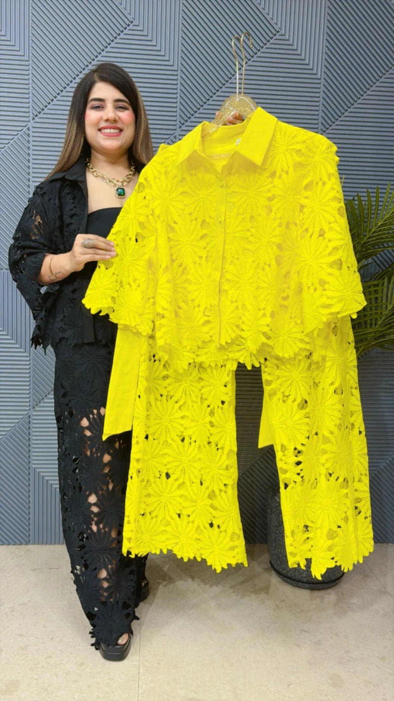 This beautiful cordset is perfect for the season . The top and bottom co-ordinate beautifully to create a versatile and stylish outfit. Elevate your summer wardrobe with this luxurious addition, adding a touch of sparkle and charm to any occasion