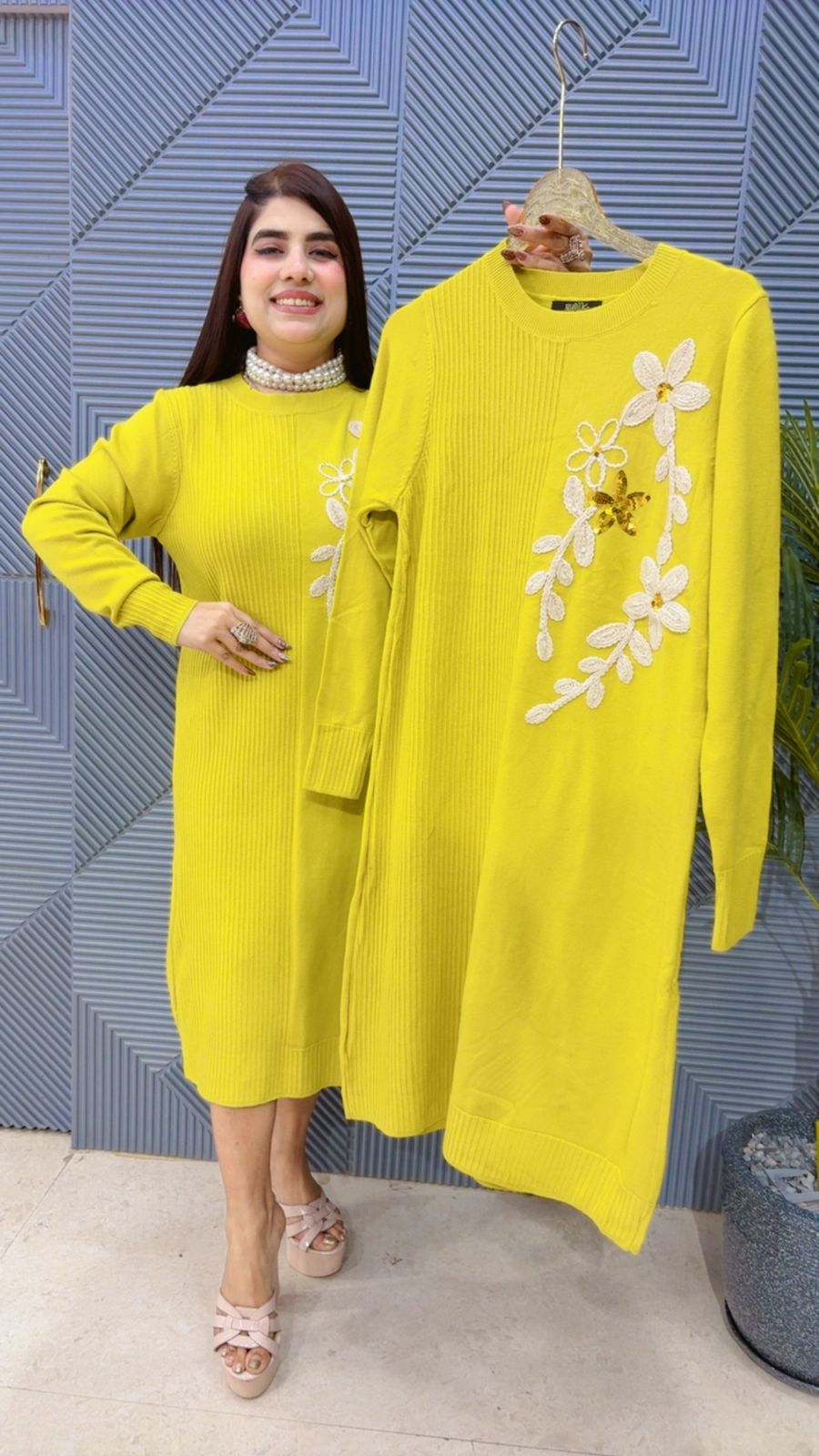 This BEAUTIFUL WOOLEN DRESS (LENGTH-40-41) (FREE SIZE STRETCHABLE) Approx is perfect for the season . The DRESS beautifully to create a versatile and stylish outfit. your wardrobe with this luxurious addition, adding a touch of sparkle and charm to any occasion. ( DELIVERY DAYS WITHIN: 12-15 DAYS)