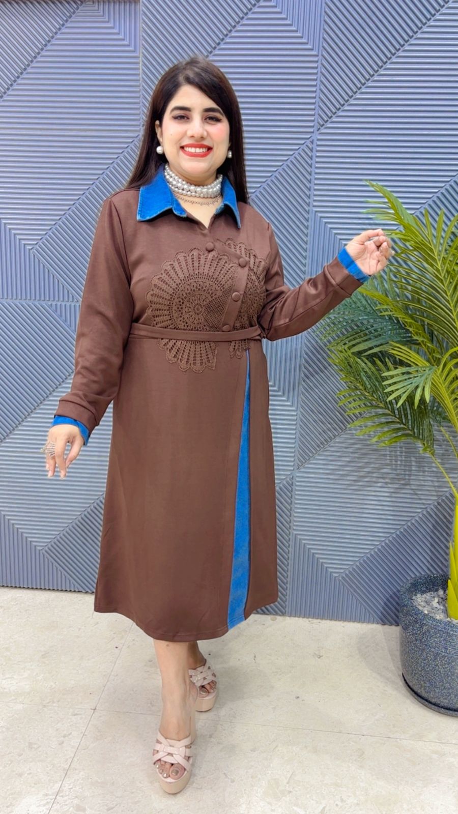 This BEAUTIFUL FULL SLEEVS DRESS WITH ATTACHED BELT (LENGTH: 43) Approx is perfect for the season . The DRESS beautifully to create a versatile and stylish outfit. your WINTER wardrobe with this luxurious addition, adding a touch of sparkle and charm to any occasion. ( DELIVERY DAYS WITHIN: 10-12 DAYS)