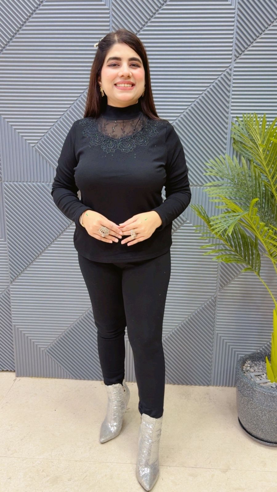 This BEAUTIFUL FLEECE TOP WITH SWAROVSKI WORK (LENGTH-23) (FREE SIZE STRETCHABLE) Approx is perfect for the season . The TOP beautifully to create a versatile and stylish outfit. your wardrobe with this luxurious addition, adding a touch of sparkle and charm to any occasion. ( DELIVERY DAYS WITHIN: 12-15 DAYS)