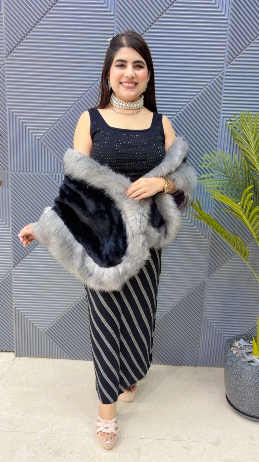 This BEAUTIFUL FURR PONCHU (FREE SIZE STRETCHABLE) Approx is perfect for the season . The PONCHU beautifully to create a versatile and stylish outfit. your wardrobe with this luxurious addition, adding a touch of sparkle and charm to any occasion. ( DELIVERY DAYS WITHIN: 12-15 DAYS)