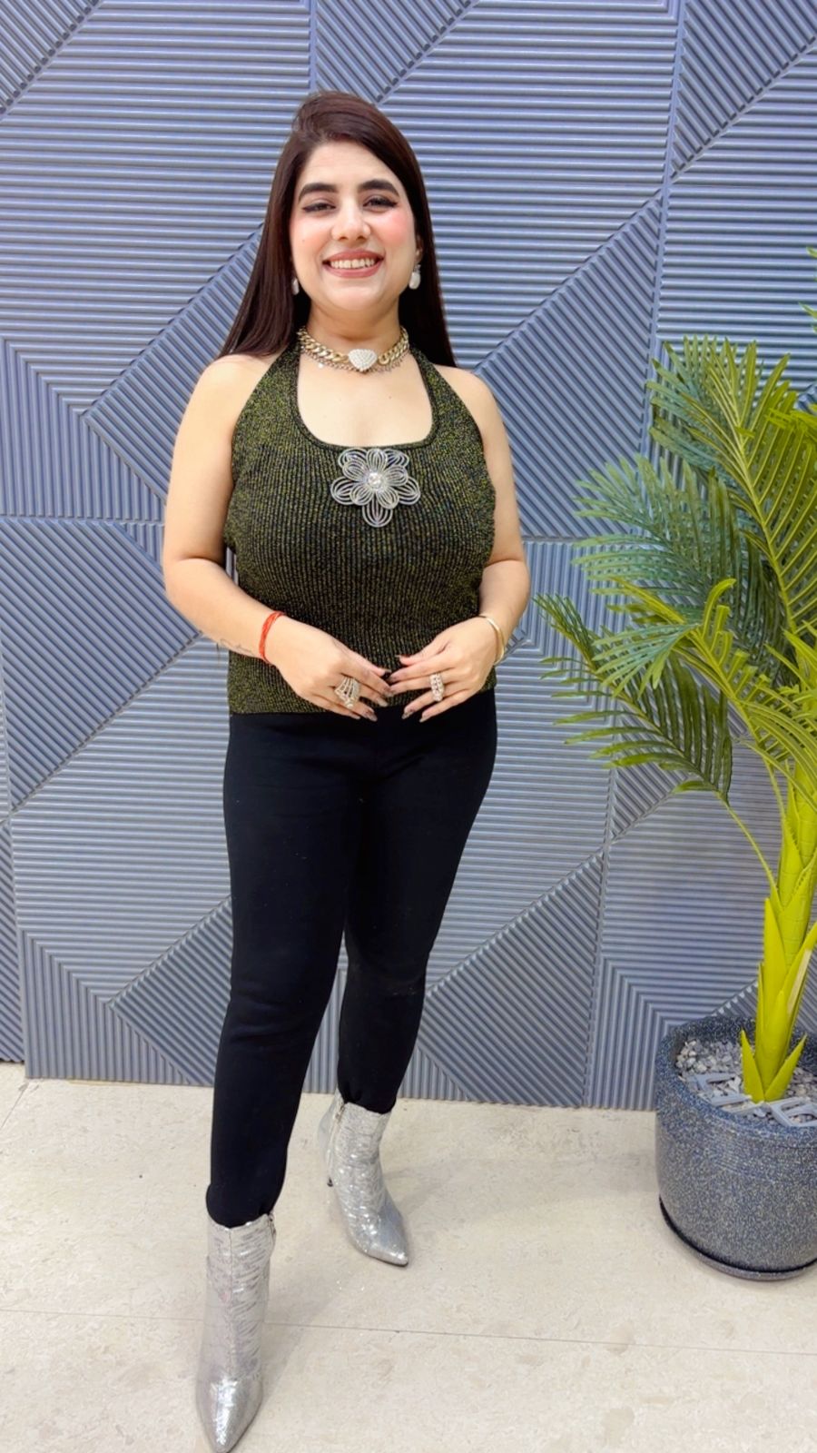 This BEAUTIFUL HALTER NECK BUSTIER TOP (LENGTH-19-20) (FREE SIZE STRETCHABLE) Approx is perfect for the season . The TOP beautifully to create a versatile and stylish outfit. your wardrobe with this luxurious addition, adding a touch of sparkle and charm to any occasion. ( DELIVERY DAYS WITHIN: 12-15 DAYS)