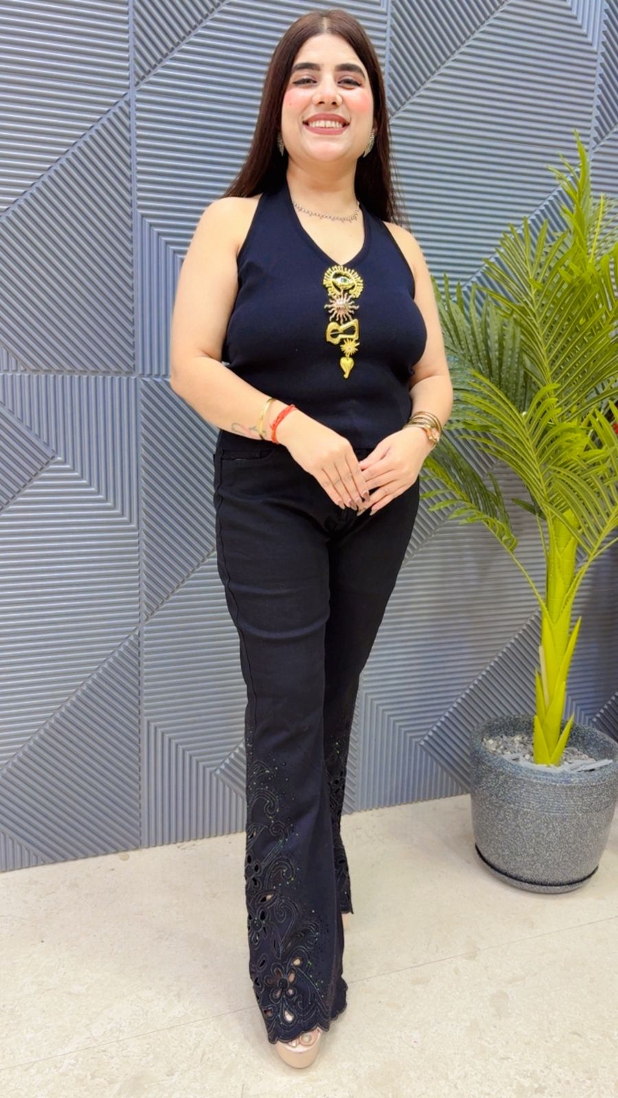 This BEAUTIFUL HALTER NECK TOP (LENGTH-21) (FREE SIZE STRETCHABLE) Approx is perfect for the season . The TOP beautifully to create a versatile and stylish outfit. your wardrobe with this luxurious addition, adding a touch of sparkle and charm to any occasion. ( DELIVERY DAYS WITHIN: 12-15 DAYS)