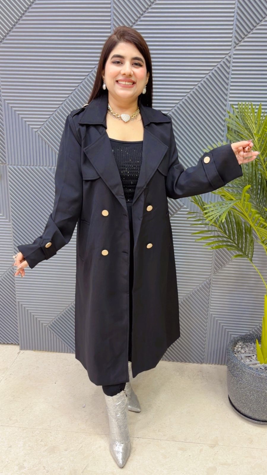 This BEAUTIFUL LONG COAT WITH BELT (LENGTH:44) Approx is perfect for the season (FREE SIZE STRETCHABLE). The COAT beautifully to create a versatile and stylish outfit. your WINTER wardrobe with this luxurious addition, adding a touch of sparkle and charm to any occasion.( DELIVERY DAYS WITHIN: 12-15 DAYS)