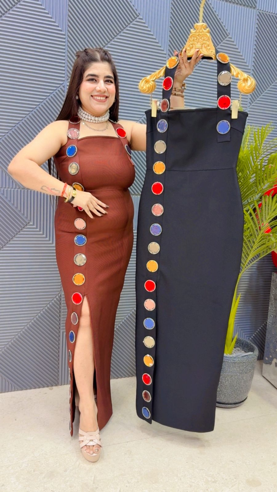 This BEAUTIFUL MIRROR WORK DRESS WITH SLIT (LENGTH: 55) (FREE SIZE STRETCHABLE) approx is perfect for the season . The DRESS beautifully to create a versatile and stylish outfit. your WINTER wardrobe with this luxurious addition, adding a touch of sparkle and charm to any occasion. ( DELIVERY DAYS WITHIN: 12-15 DAYS)