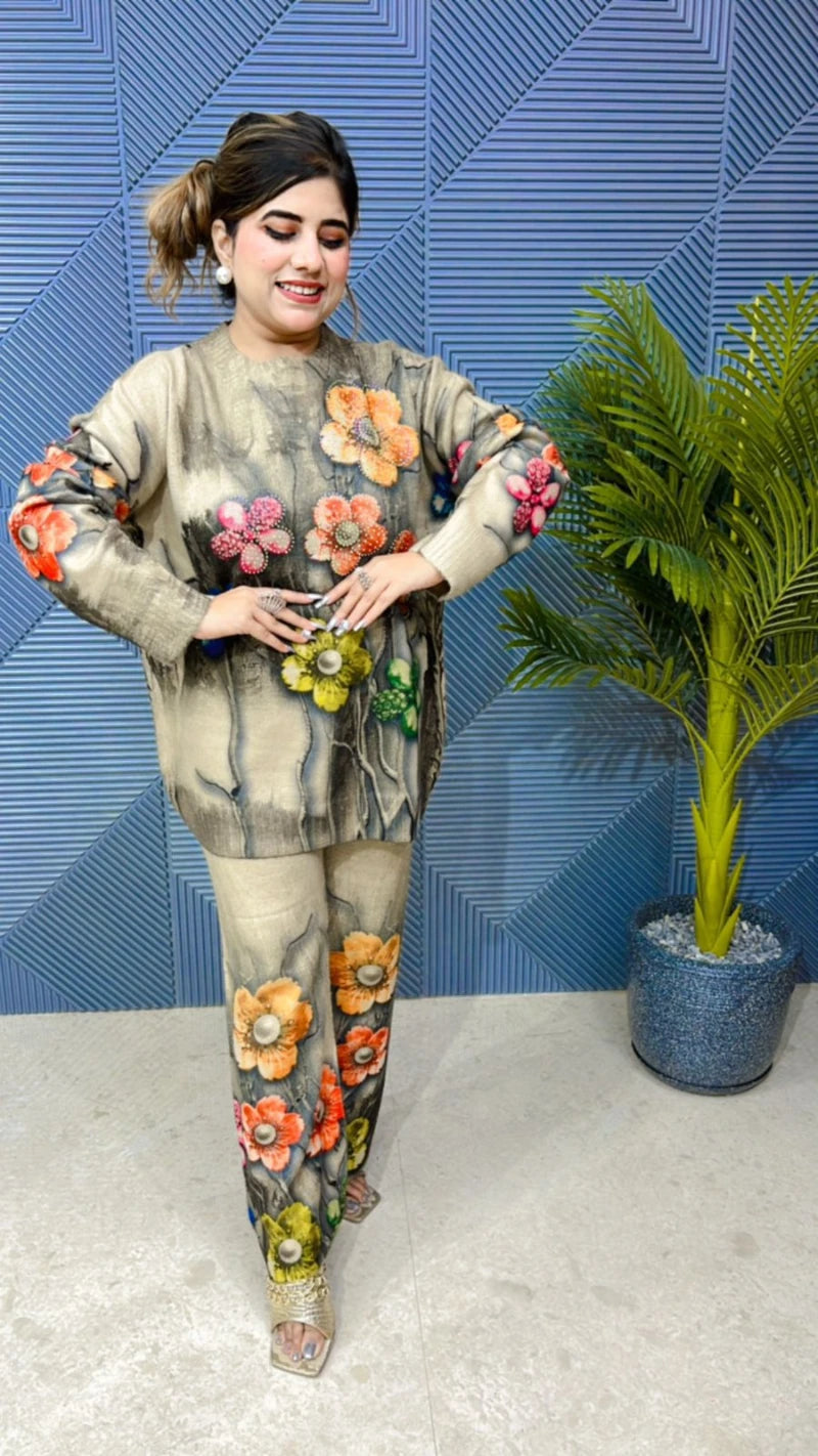 Elevate your style with our Beautiful Pashmina Cord Set With Swarovski Work. Made from high-quality, imported wool fabric, this set exudes elegance and class. Perfect for any occasion, add a touch of luxury to your wardrobe with our beautifully crafted cord set.