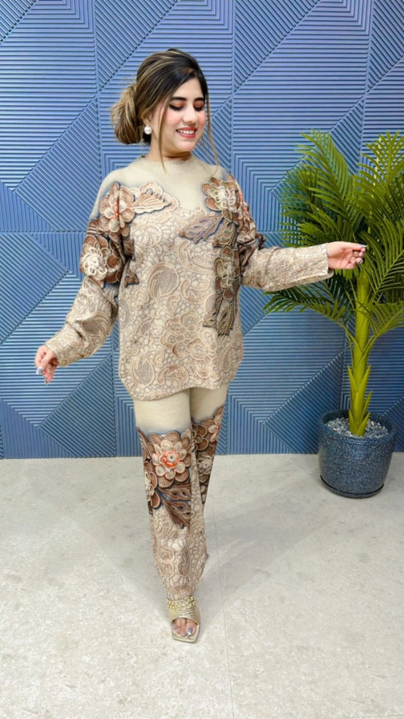 Elevate your style with our Beautiful Pashmina Cord Set With Swarovski Work. Made from high-quality, imported wool fabric, this set exudes elegance and class. Perfect for any occasion, add a touch of luxury to your wardrobe with our beautifully crafted cord set.