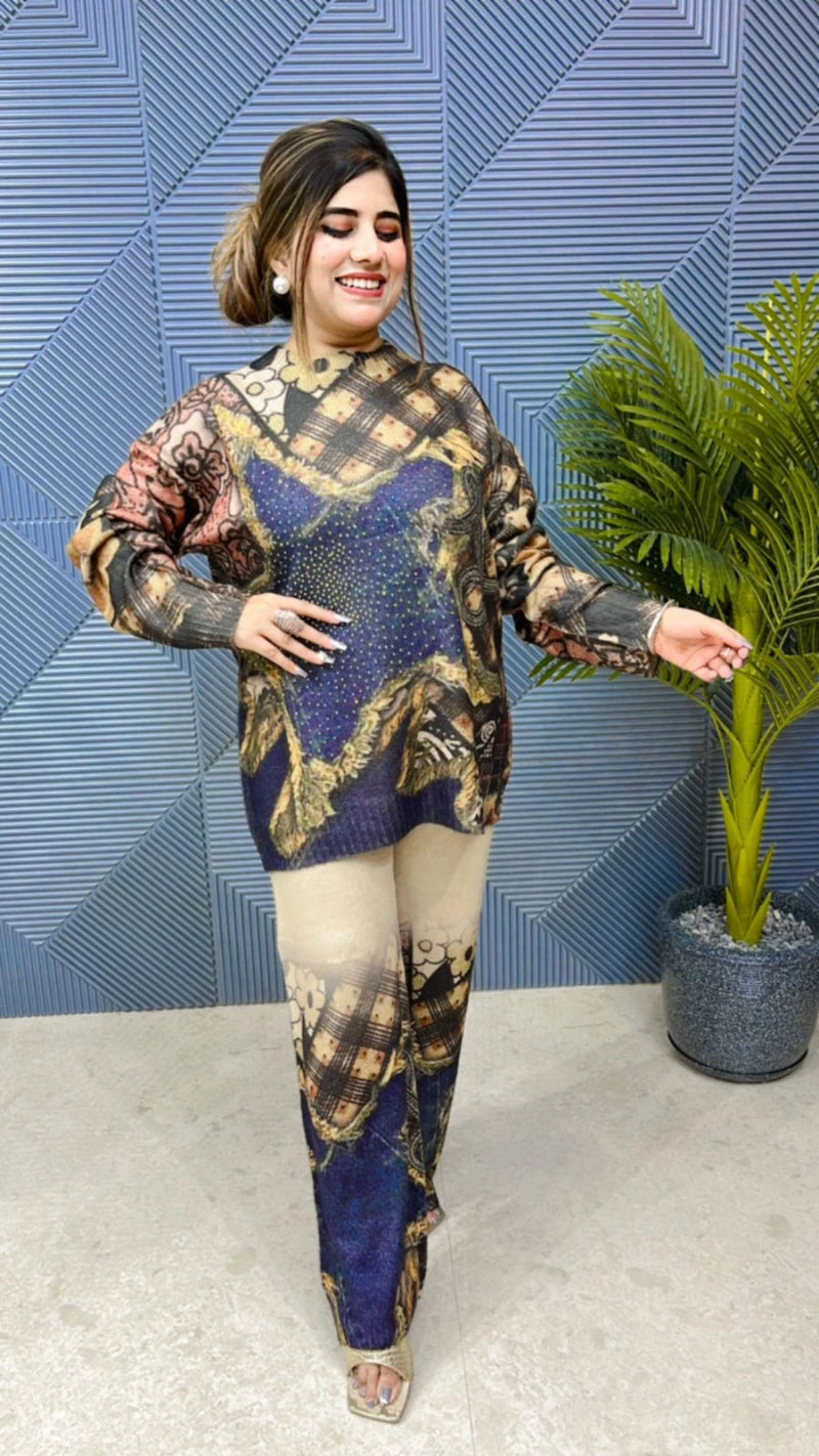 Elevate your style with our Beautiful Pashmina Cord Set With Swarovski Work. Made from high-quality, imported wool fabric, this set exudes elegance and class. Perfect for any occasion, add a touch of luxury to your wardrobe with our beautifully crafted cord set.