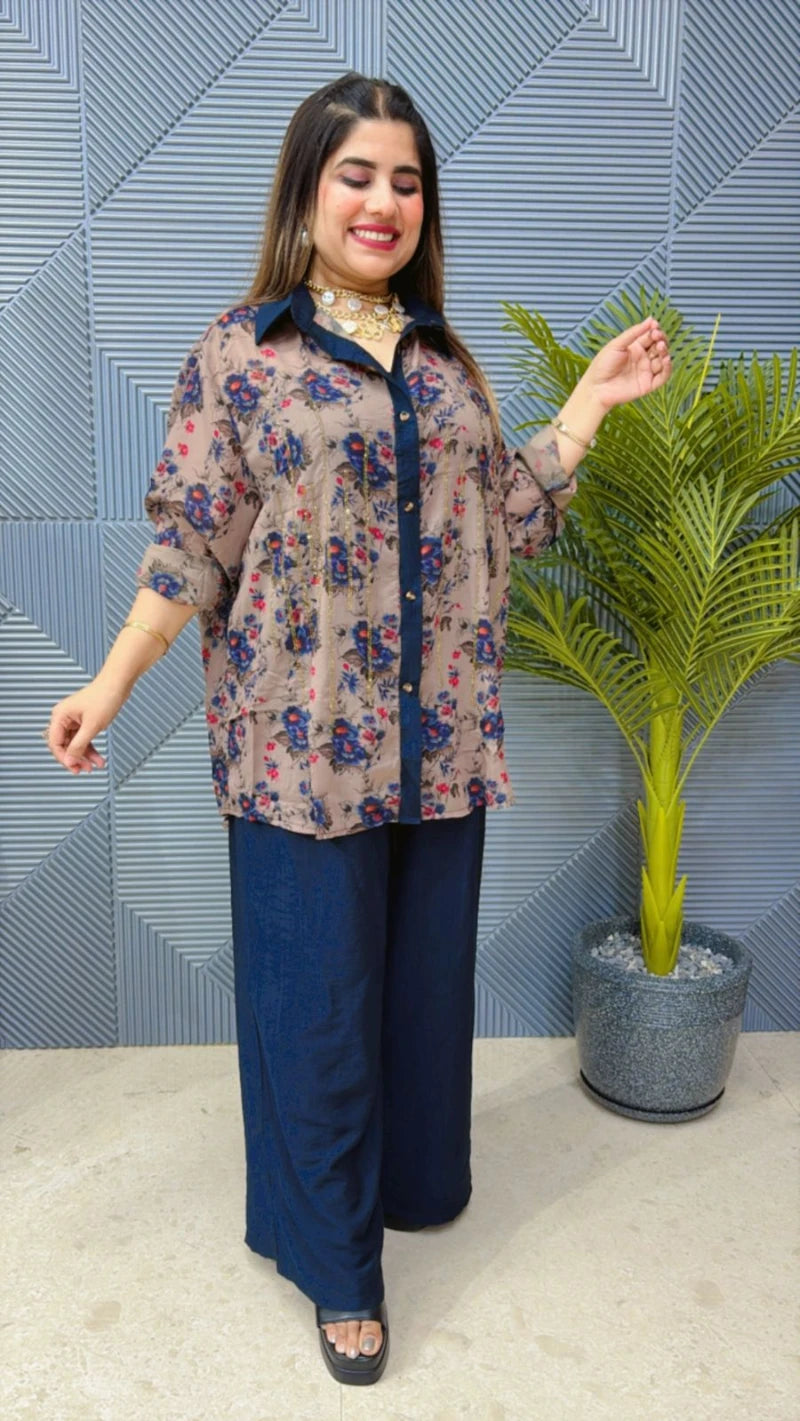 BEAUTIFUL PRINTED CORDSET WITH SIROSKI FRONT WORK. FABRIC SUMMER MASLIN .