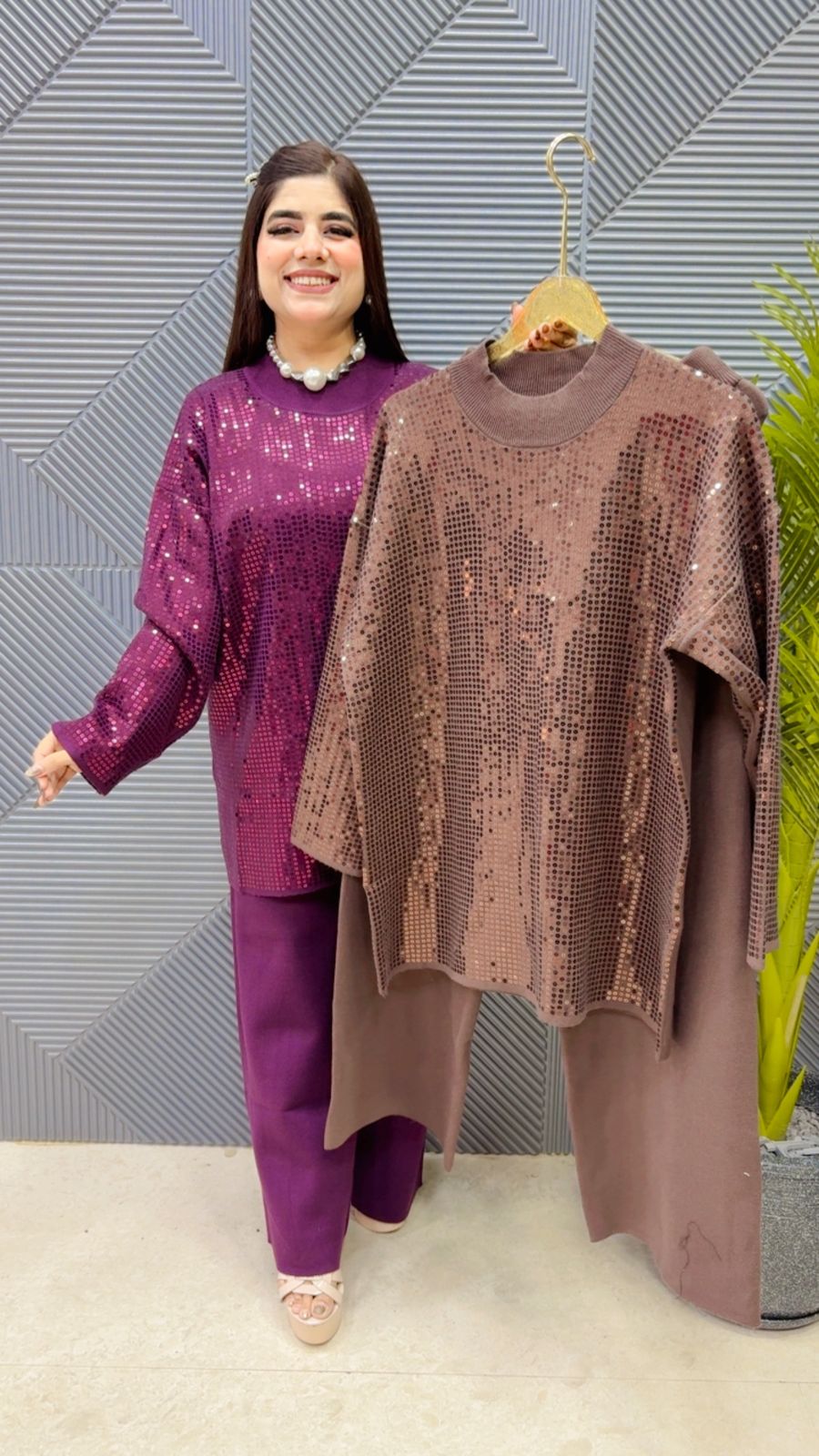 This BEAUTIFUL SEQUENCE WORK CORD SET (TOP LENGTH: 31 BOTTOM LENGTH-41)(FREE SIZE STRETCHABLE) Approx is perfect for the season . ThIS CORD SET beautifully to create a versatile and stylish outfit. your WINTER wardrobe with this luxurious addition, adding a touch of sparkle and charm to any occasion.( DELIVERY DAYS WITHIN: 12-15 DAYS)