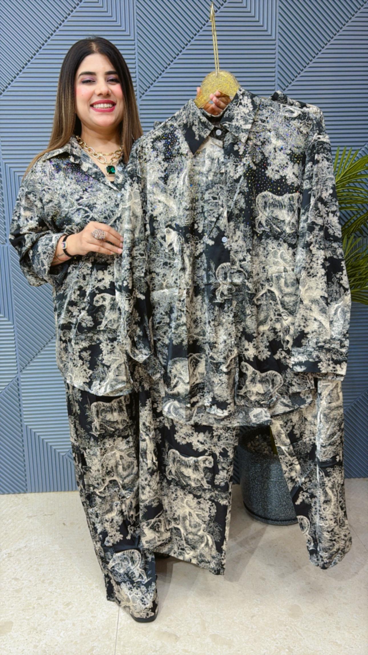 This cotton maslin Cord Set is perfect for the season with its stunning Swarovski work. The top and bottom co-ordinate beautifully to create a versatile and stylish outfit. Elevate your summer wardrobe with this luxurious addition, adding a touch of sparkle and charm to any occasion.