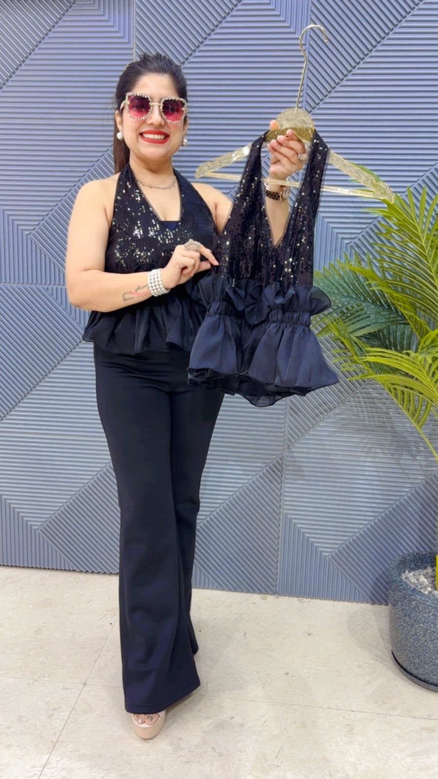This BEAUTIFUL HALTER NECK TOP ( LENGTH: LENGTH: 19-20) Approx is perfect for the season . The TOP beautifully to create a versatile and stylish outfit. your WINTER wardrobe with this luxurious addition, adding a touch of sparkle and charm to any occasion. ( DELIVERY DAYS WITHIN: 10-12 DAYS)