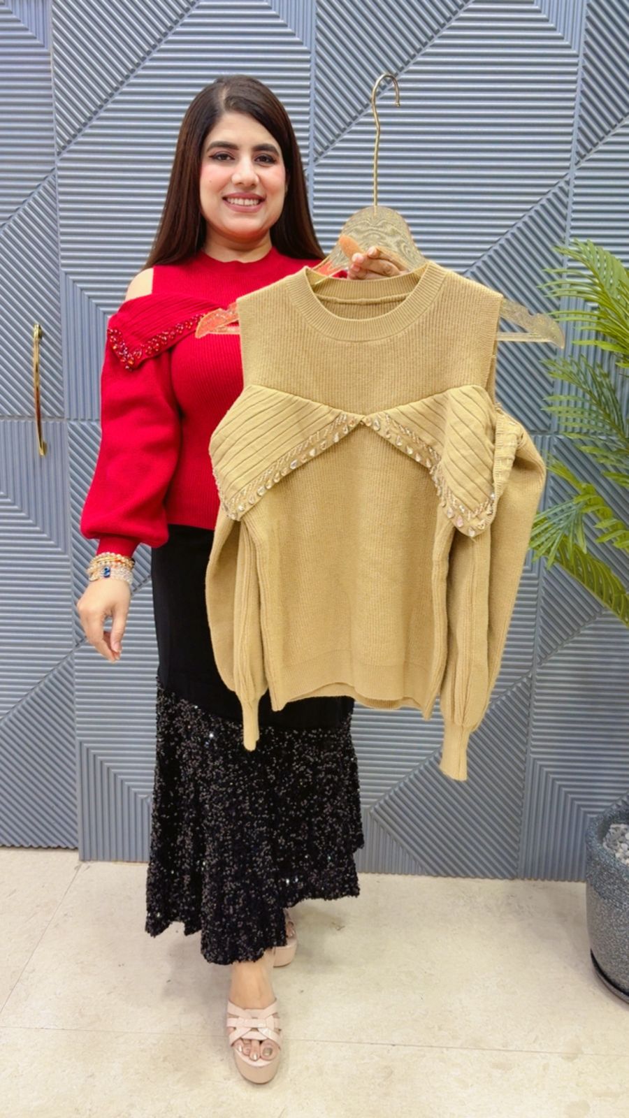 This BEAUTIFUL CUT SHOULDER TOP WITH STUDDED WORK (LENGTH-21) Approx is perfect for the season . The TOP beautifully to create a versatile and stylish outfit. your wardrobe with this luxurious addition, adding a touch of sparkle and charm to any occasion. ( DELIVERY DAYS WITHIN: 10-12 DAYS)