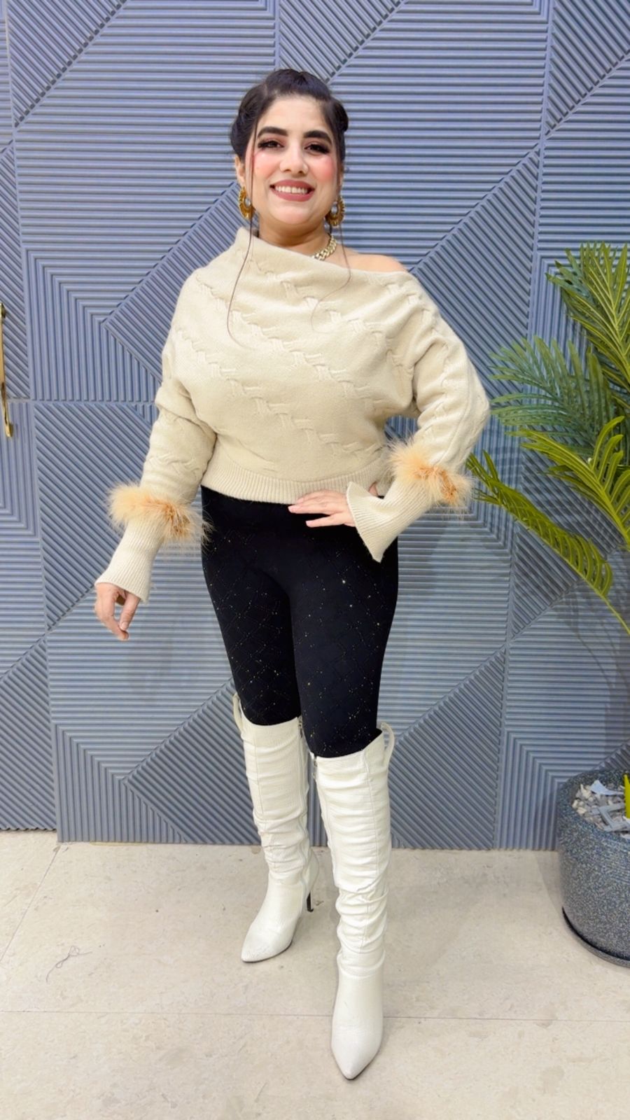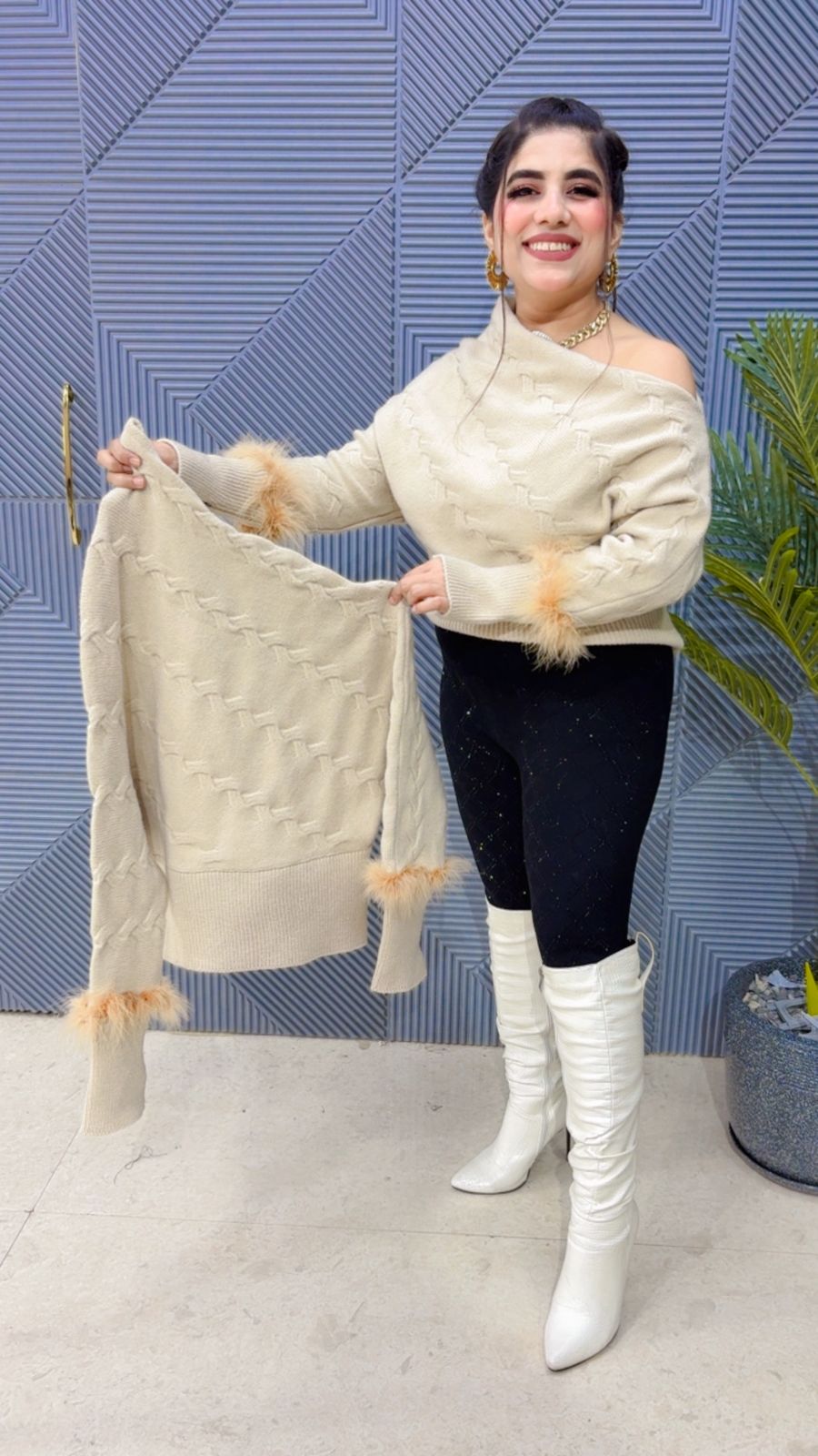 This BEAUTIFUL ONE SHOULDER DOWN HAND FURR TOP (LENGTH-26) (FREE SIZE STRETCHABLE) Approx is perfect for the season . The TOP beautifully to create a versatile and stylish outfit. your wardrobe with this luxurious addition, adding a touch of sparkle and charm to any occasion. ( DELIVERY DAYS WITHIN: 12-15 DAYS)