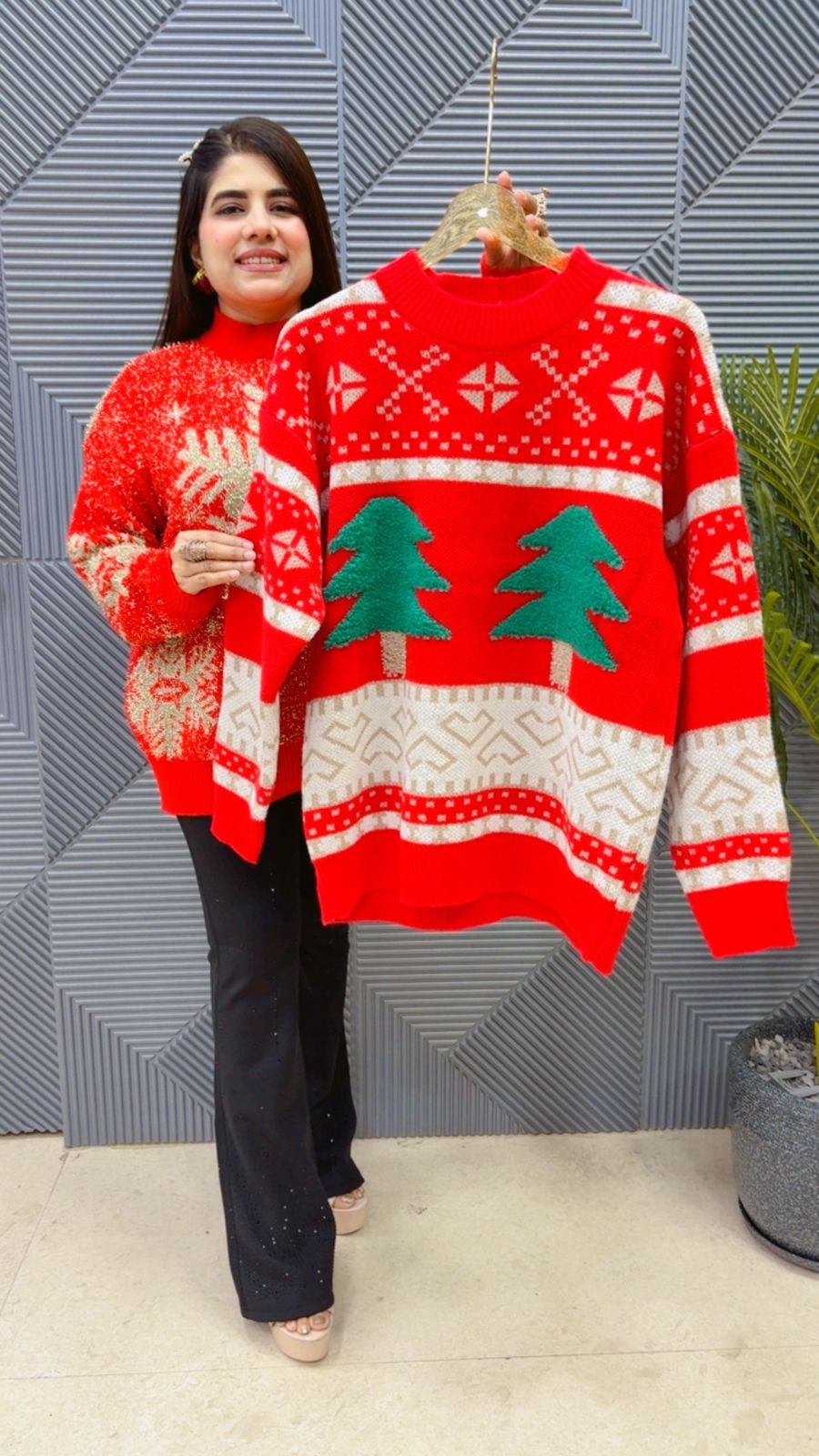 This BEAUTIFUL SHIMMER WOOLEN CHRISTMAS TOP (LENGTH: 27-28) (FREE SIZE STRETCHABLE) approx is perfect for the season . The TOP beautifully to create a versatile and stylish outfit. your WINTER wardrobe with this luxurious addition, adding a touch of sparkle and charm to any occasion. ( DELIVERY DAYS WITHIN: 12-15 DAYS)