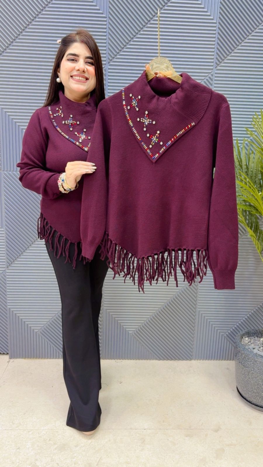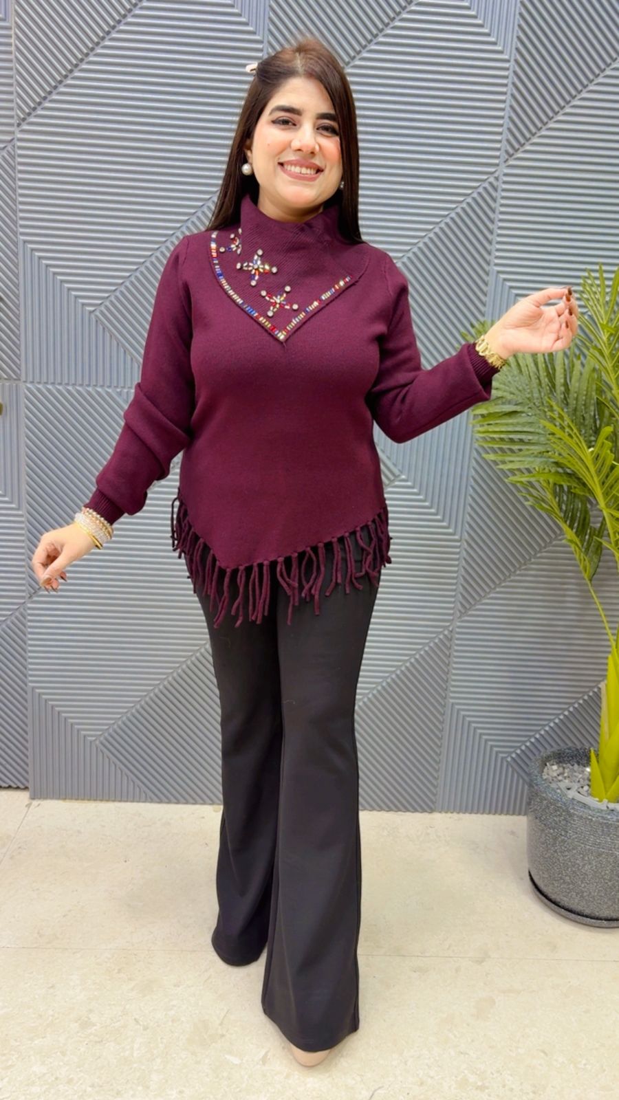 This BEAUTIFUL STONE WORK TOP (LENGTH: 26) (FREE SIZE STRETCHABLE) approx is perfect for the season . The TOP beautifully to create a versatile and stylish outfit. your WINTER wardrobe with this luxurious addition, adding a touch of sparkle and charm to any occasion. ( DELIVERY DAYS WITHIN: 12-15 DAYS)