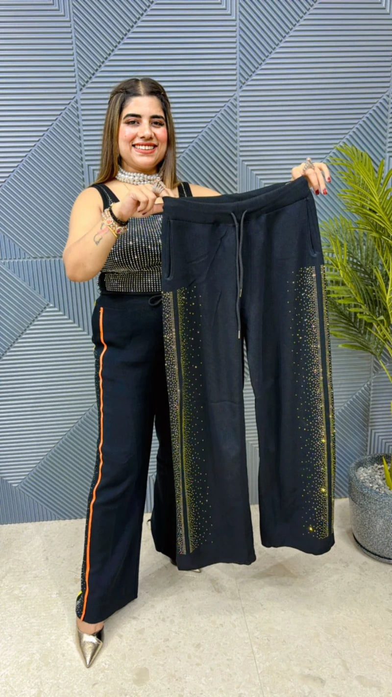 Expertly crafted from imported knitted stretch fabric, these Chic Bottoms from girls glitters feature stunning Swarovski accents for a touch of glamour. Experience luxurious comfort and effortless style with this chic and sophisticated bottom wear. Perfect for any occasion, these bottoms will elevate your wardrobe.
