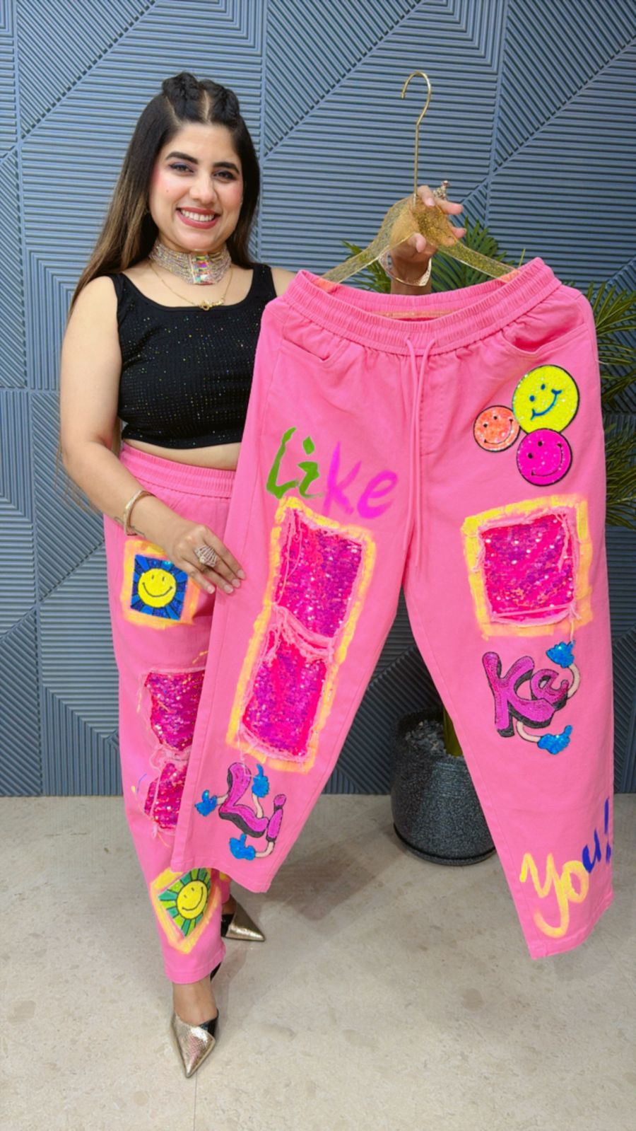 Cute Denim Bottom With Work GGR1326