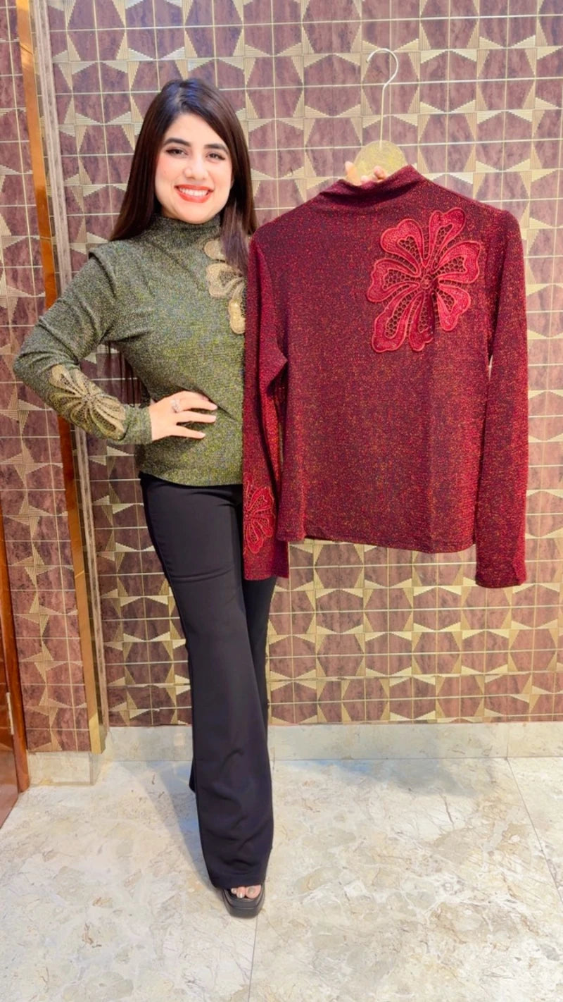 This BEAUTIFUL PARTYWEAR POWERNET TOP WITH LASER CUT FLOWER SWAROVSKI WORK (LENGTH: 26-27) Approx is perfect for the season . The TOP beautifully to create a versatile and stylish outfit. your WINTER wardrobe with this luxurious addition, adding a touch of sparkle and charm to any occasion.