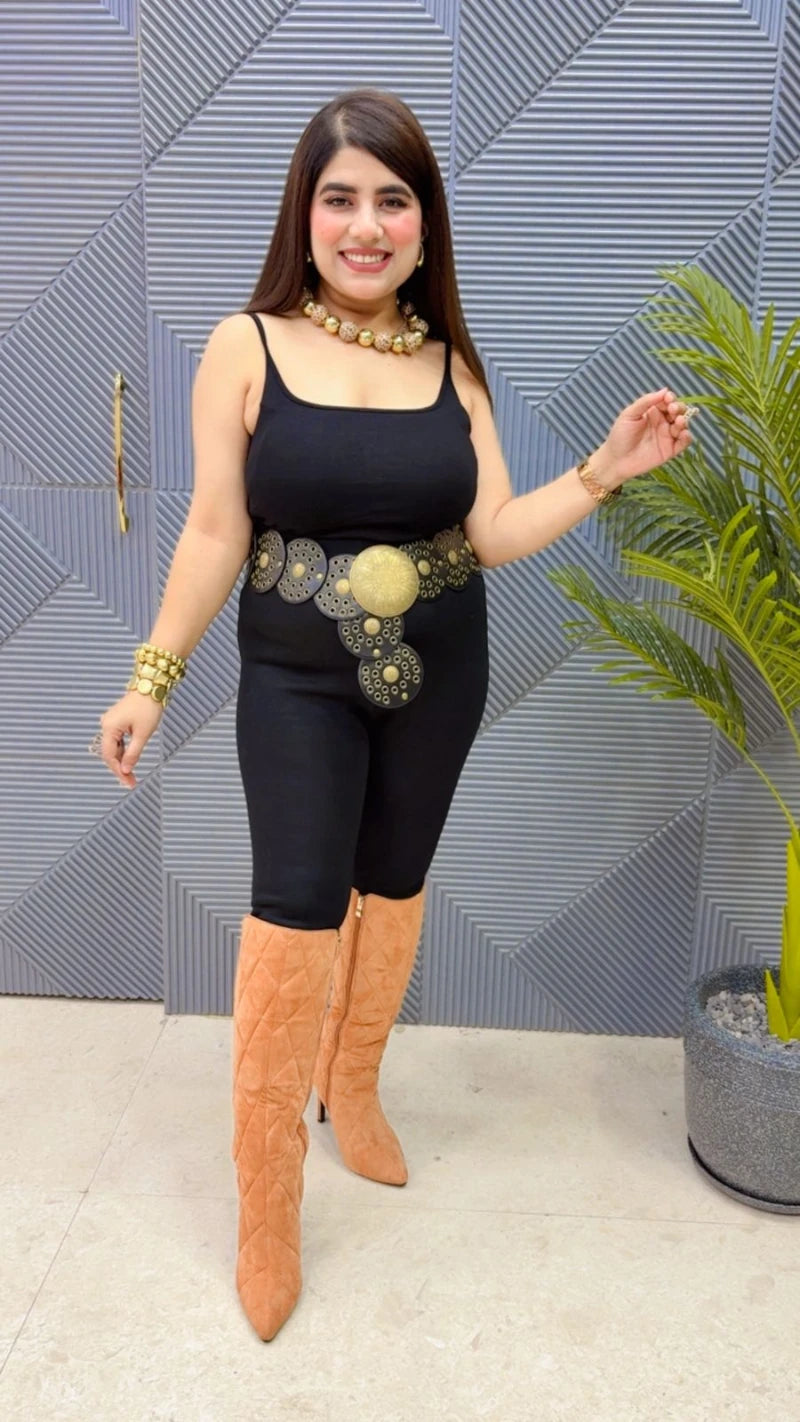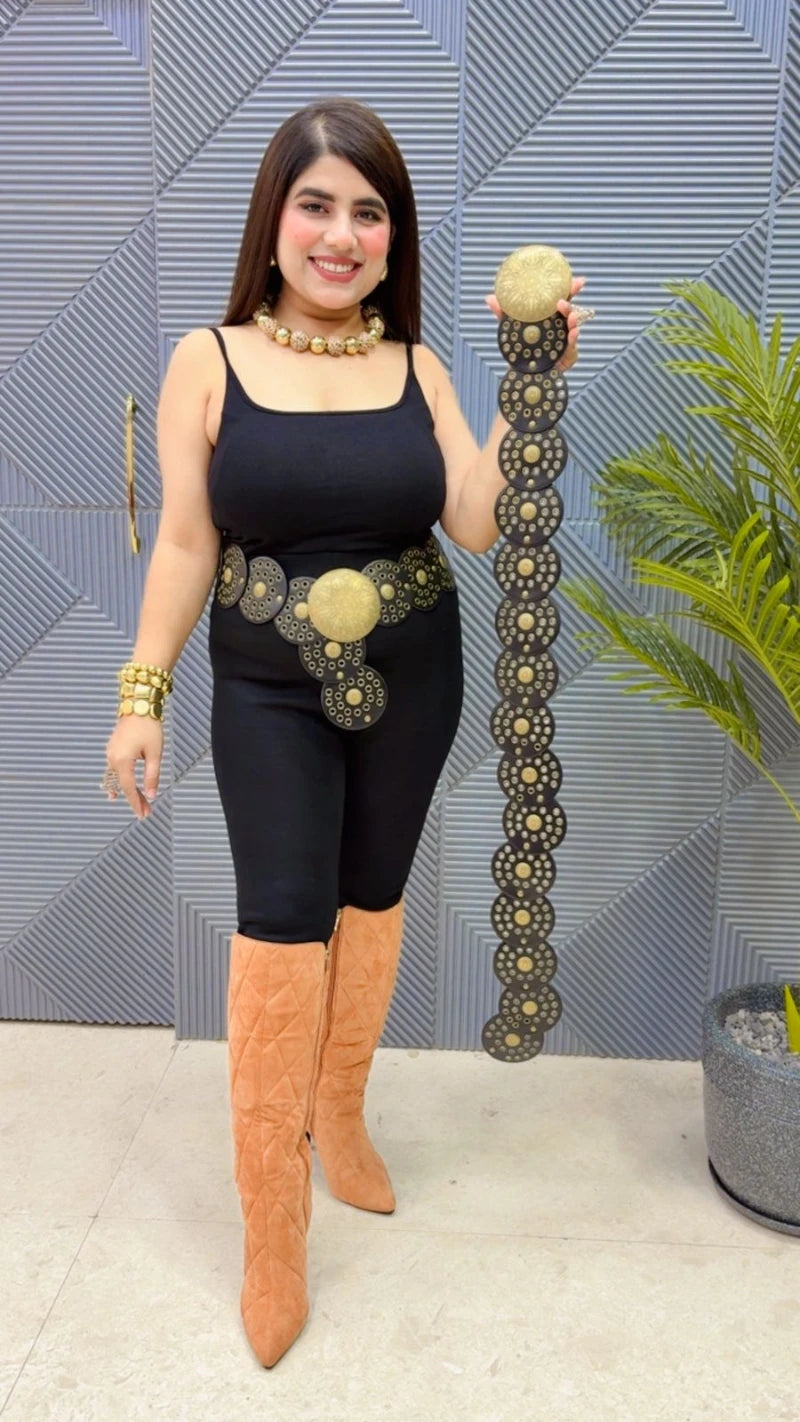 This BEAUTIFUL CELEBRITY BLACK COLOUR BELT (LENGTH: 40-41) Approx is perfect for the season . The BELT beautifully to create a versatile and stylish outfit. your wardrobe with this luxurious addition, adding a touch of sparkle and charm to any occasion