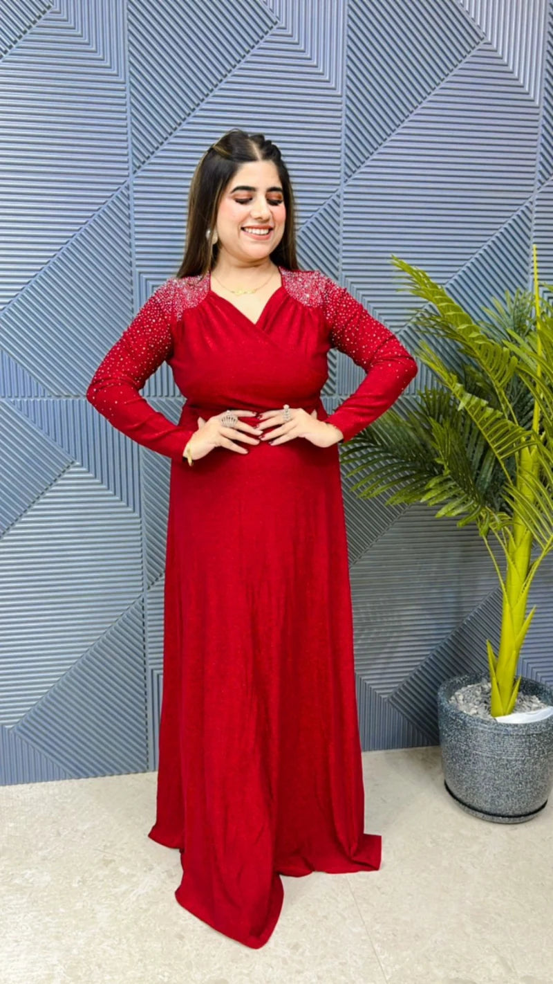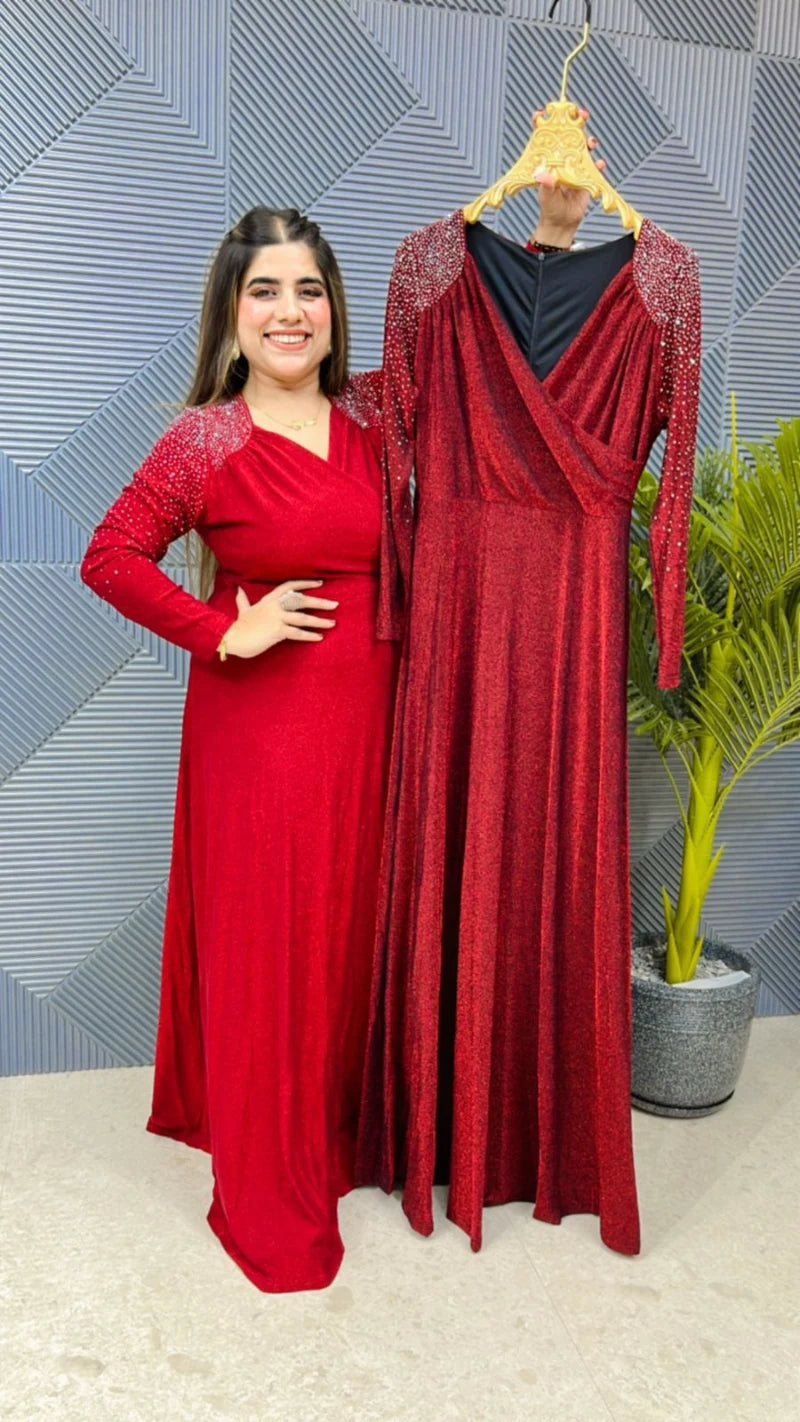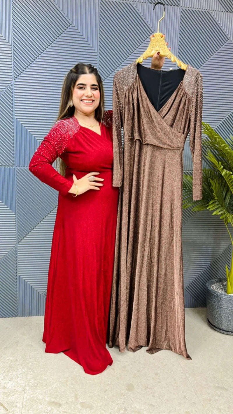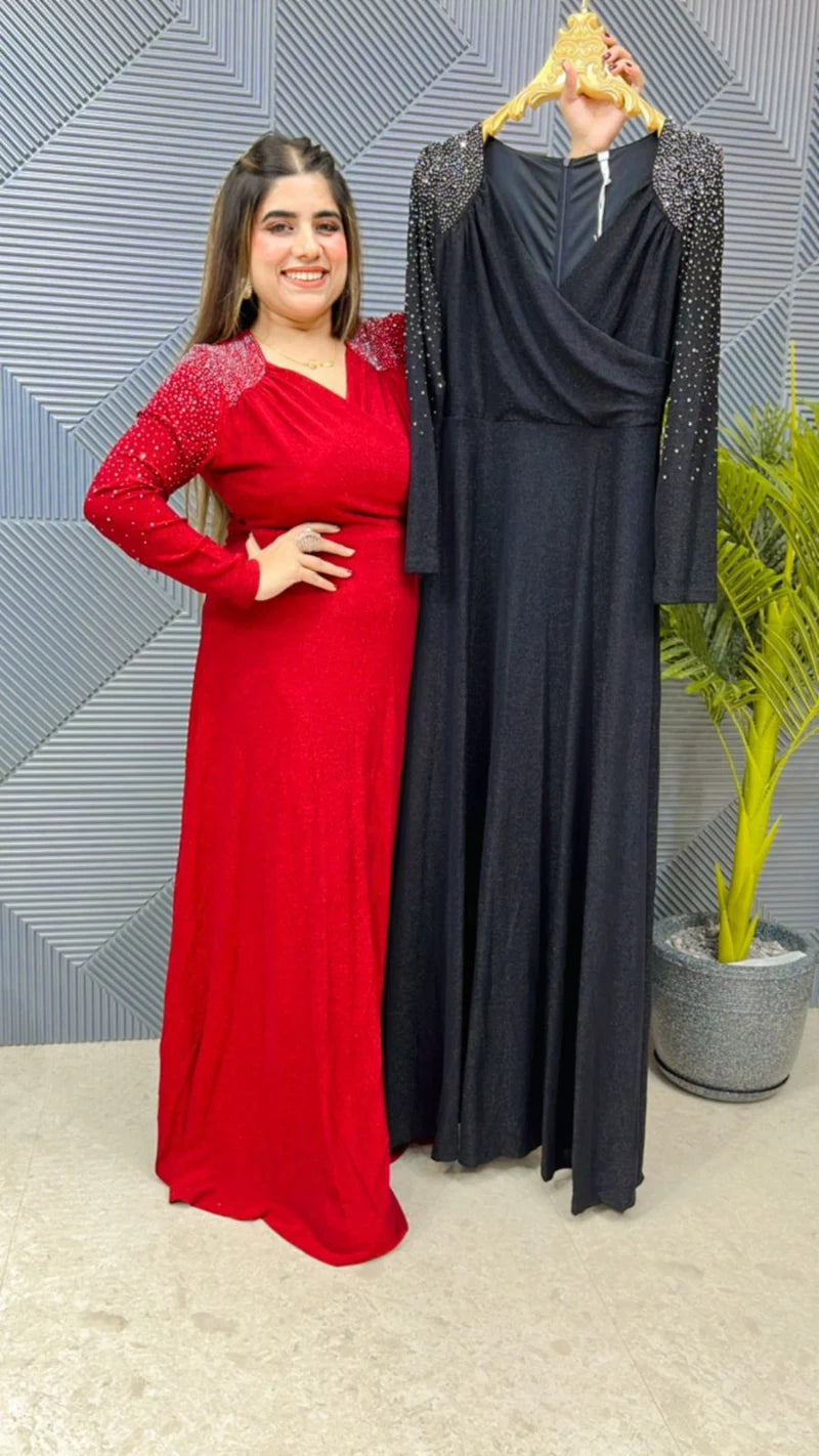 Introducing the Swarovski party wear Gown - the perfect addition to your wardrobe. This dazzling piece features high-quality Swarovski crystals, adding a touch of elegance and glamour to any party look. Expertly crafted for maximum comfort and style, this gown is perfect for any special occasion.