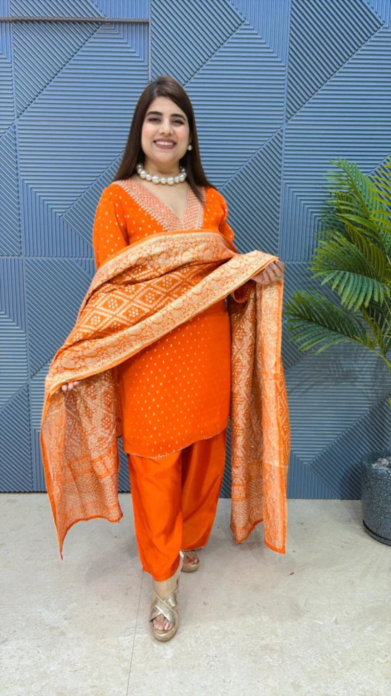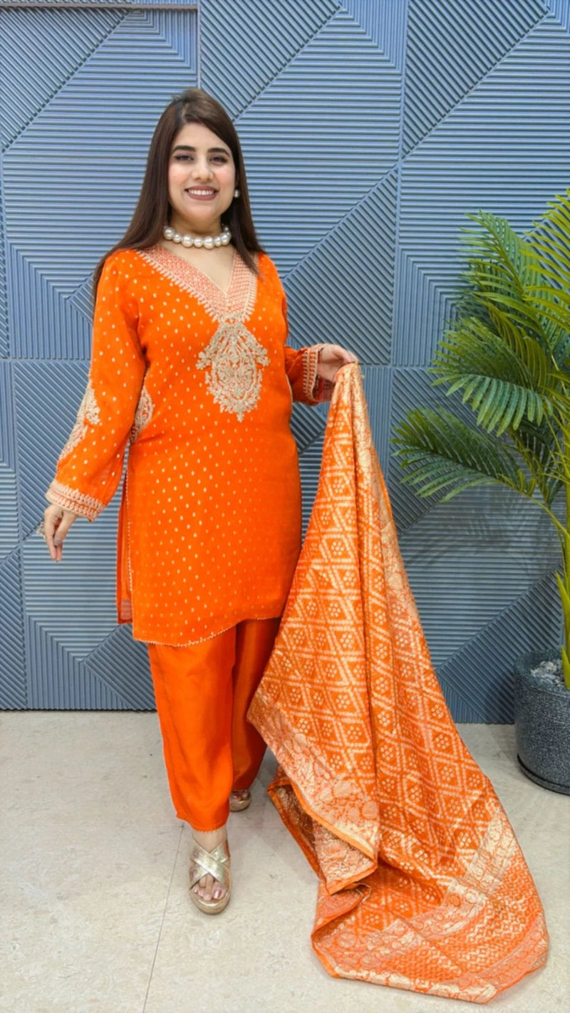 This BEAUTIFUL 3 PCS SUIT WITH EMBROIDERY WORK AND PRINTED DUPATTA (KURTA LENGTH: 35,BOTTOM LENGTH: 39-40) is perfect for the season . The 3 PCS SUIT beautifully to create a versatile and stylish outfit. your summer wardrobe with this luxurious addition, adding a touch of sparkle and charm to any occasion.