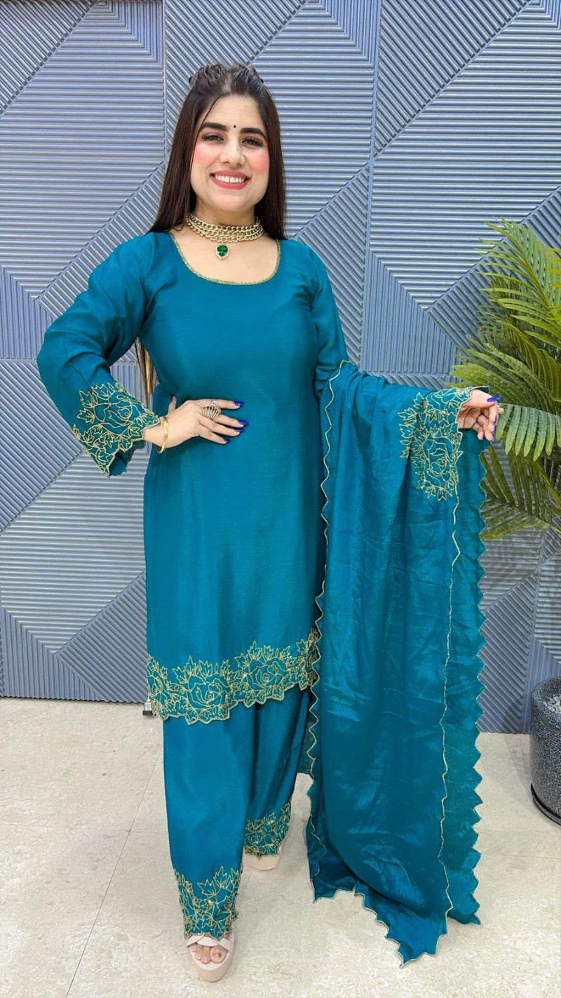 This BEAUTIFUL 3 PIECE SET CUT DANA WORK IN KURTA ,BOTTOM AND DUPATTA (kurta length 37 ,bottom 40-41) is perfect for the season . The 3 PCS SUIT beautifully to create a versatile and stylish outfit. your summer wardrobe with this luxurious addition, adding a touch of sparkle and charm to any occasion .