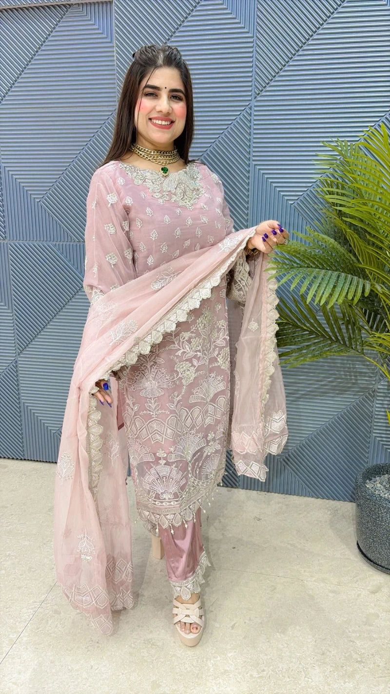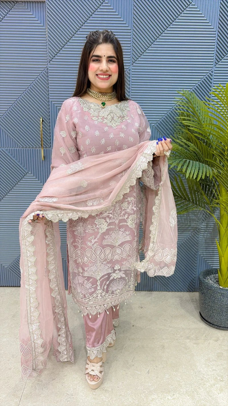 This BEAUTIFUL 3 PIECE SUIT WITH HAND WORK EMBELLISHMENT CUT DANA WORK AND EMBROIDERY IN KURTA ,BOTTOM AND DUPATTA (kurta length 43-44 ,bottom 38-39) is perfect for the season . The 3 PCS SUIT beautifully to create a versatile and stylish outfit. your summer wardrobe with this luxurious addition, adding a touch of sparkle and charm to any occasion .