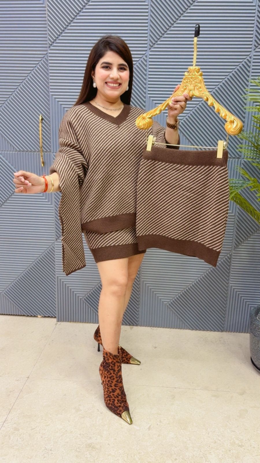 This BEAUTIFUL WOLLEN SKIRT SET WITH STOLE (SKIRT LENGTH:24-25, TOP LENGTH: 17-18) Approx is perfect for the season . The SKIRT SET beautifully to create a versatile and stylish outfit. your wardrobe with this luxurious addition, adding a touch of sparkle and charm to any occasion. ( DELIVERY DAYS WITHIN: 10-12 DAYS)