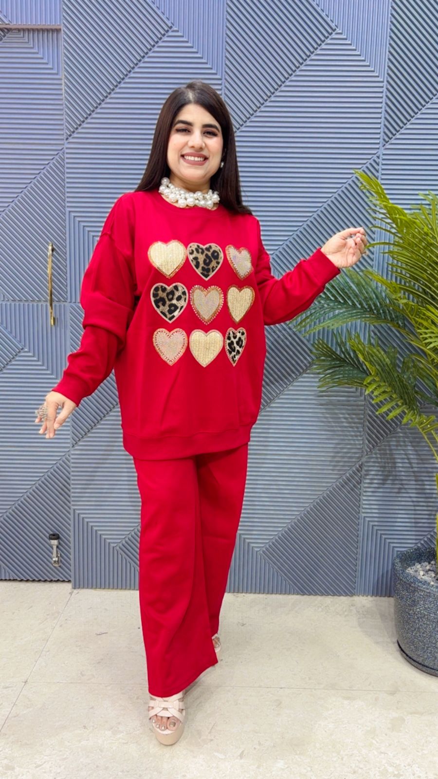 This BEAUTIFUL CO-ORD SET ( TOP LENGTH: 28 BOTTOM LENGTH 40) is perfect for the season . THE CO-ORD SET beautifully to create a versatile and stylish outfit. your WINTER wardrobe with this luxurious addition, adding a touch of sparkle and charm to any occasion.