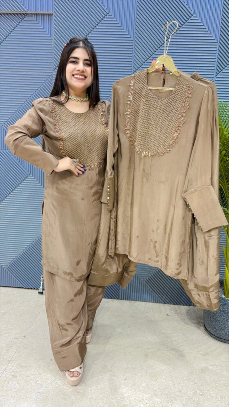 This BEAUTIFUL 2 PCS ETHENIC CO-ORD SET WITH (kurta length 35-36 ,bottom 42-43) Approx is perfect for the season . The 2 PCS CO-ORD SET beautifully to create a versatile and stylish outfit. your summer wardrobe with this luxurious addition, adding a touch of sparkle and charm to any occasion.