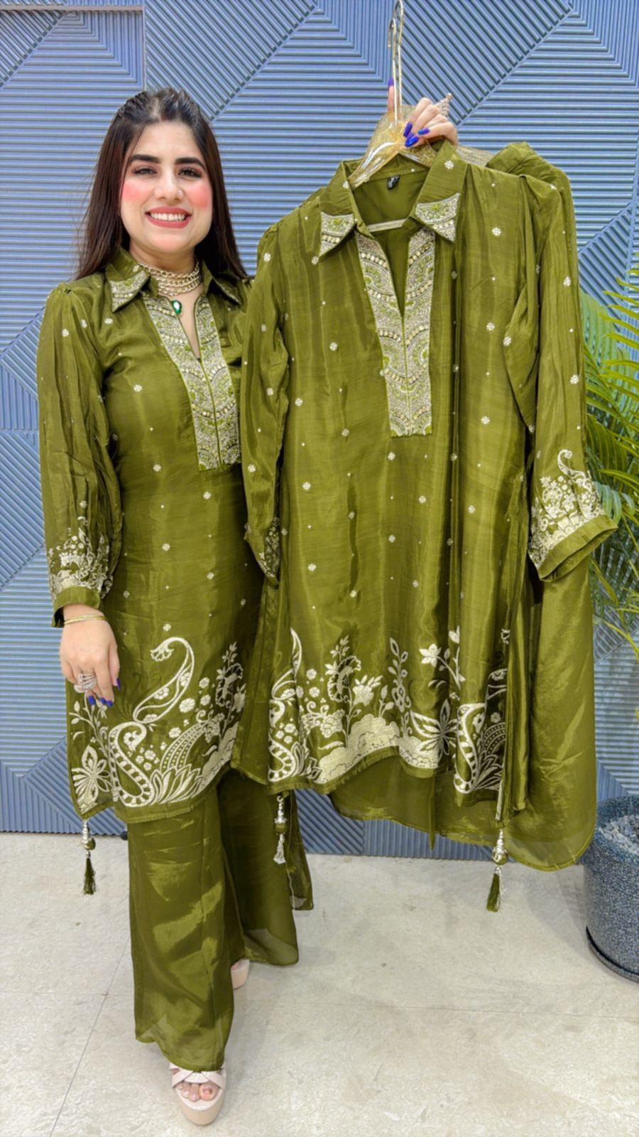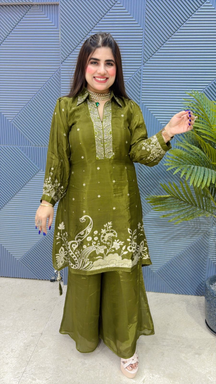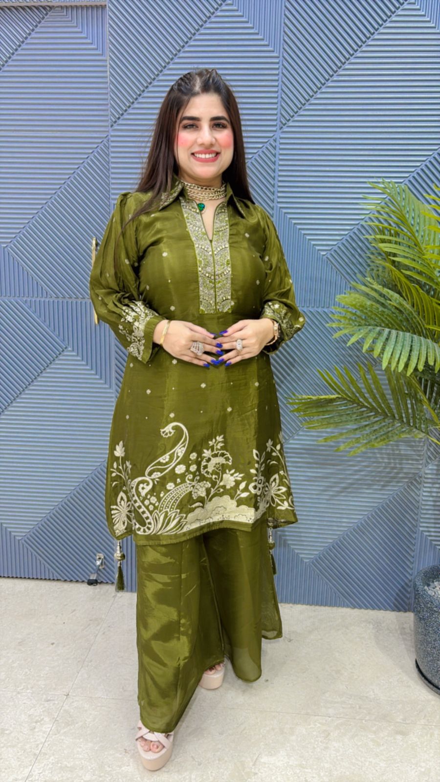 This PREMIUM CORD SET CUT DANA WORK NECK AND SLEEVES (kurta length 36 ,bottom 39) Approx is perfect for the season . The CORD SET beautifully to create a versatile and stylish outfit. your summer wardrobe with this luxurious addition, adding a touch of sparkle and charm to any occasion .