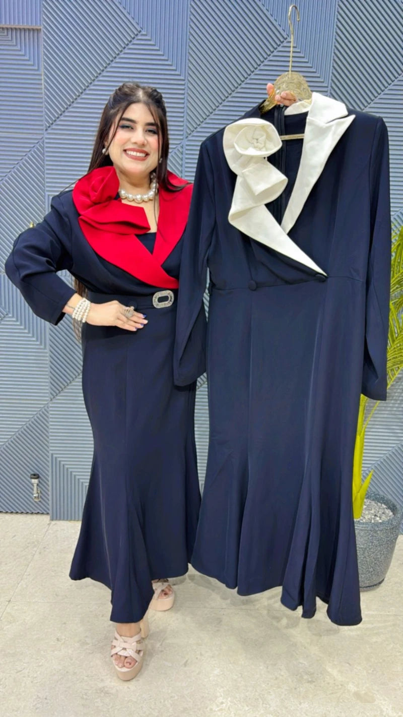 This BEAUTIFUL FULL SLEEVS FISH CUT DRESS WITH BELT ( LENGTH;48-49)Approx is perfect for the season . THE DRESS beautifully to create a versatile and stylish outfit. your summer wardrobe with this luxurious addition, adding a touch of sparkle and charm to any occasion.