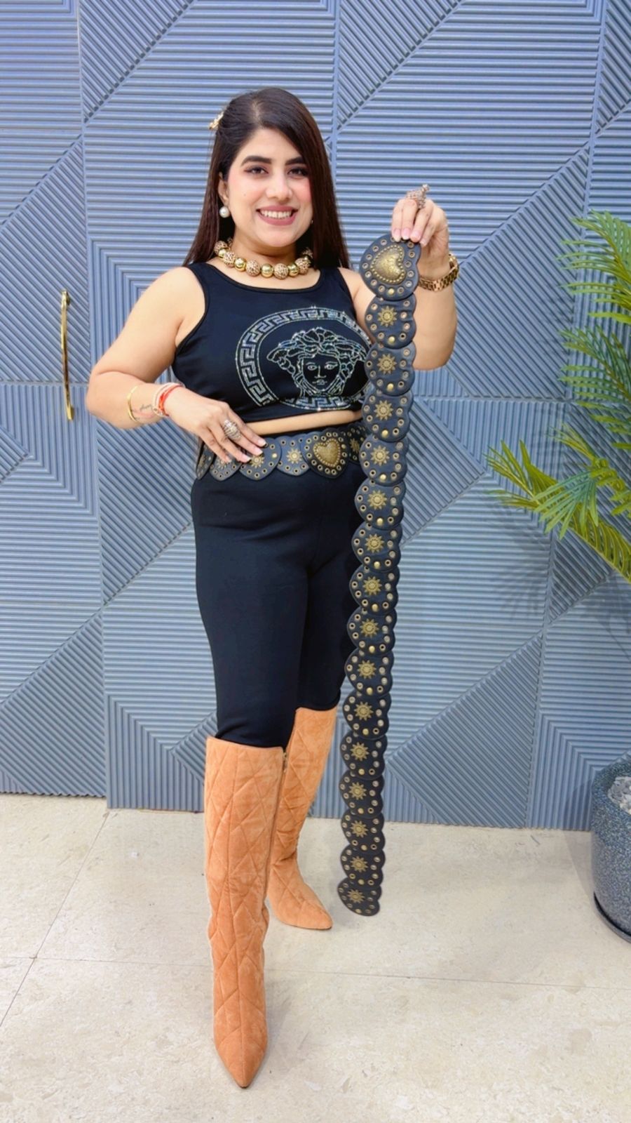 This PREMIUM HEART SHAPE CELEBRITY BELT (LENGTH: 40-41) Approx is perfect for the season . The BELT beautifully to create a versatile and stylish outfit. your wardrobe with this luxurious addition, adding a touch of sparkle and charm to any occasion