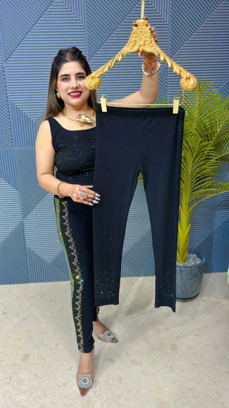 Experience luxury and comfort with our Premium Imported Swarovski Leggings. Crafted with the finest Swarovski crystals, these leggings offer a heavy quality and stretchable material for the perfect fit. Upgrade your wardrobe with these premium leggings that provide both style and functionality.
