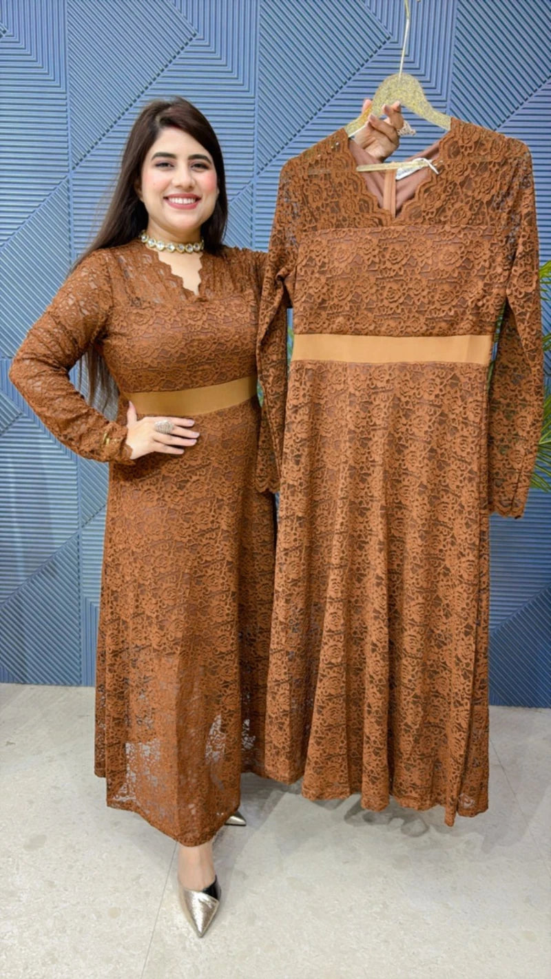 PREMIUM PADED LACEWORK DRESS WITH LINING GGR1868
