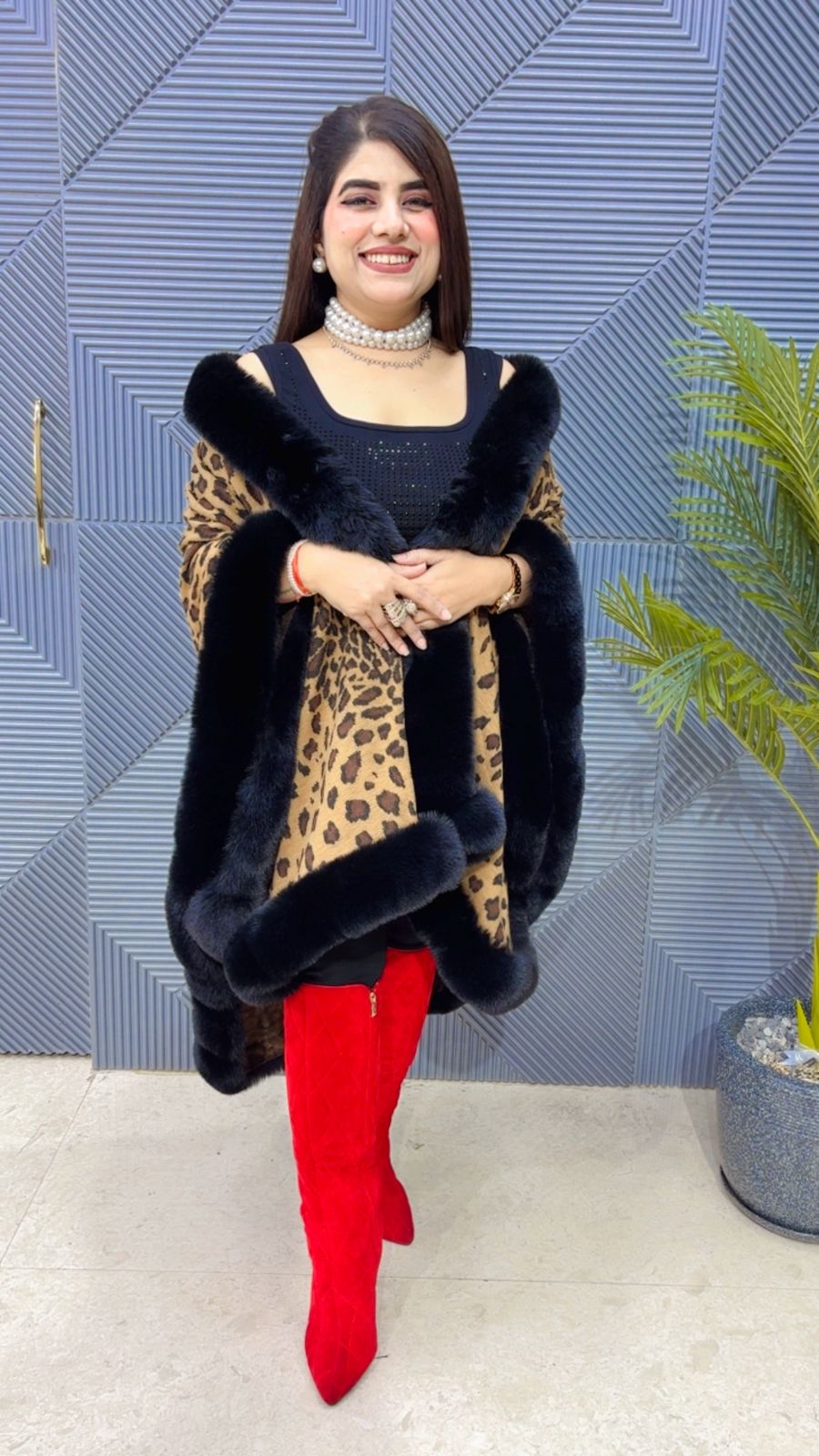 This PREMIUM FURR PONCHU (FREE SIZE) Approx is perfect for the season . The PONCHU beautifully to create a versatile and stylish outfit. your WINTER wardrobe with this luxurious addition, adding a touch of sparkle and charm to any occasion. ( DELIVERY DAYS WITHIN: 10-12 DAYS)