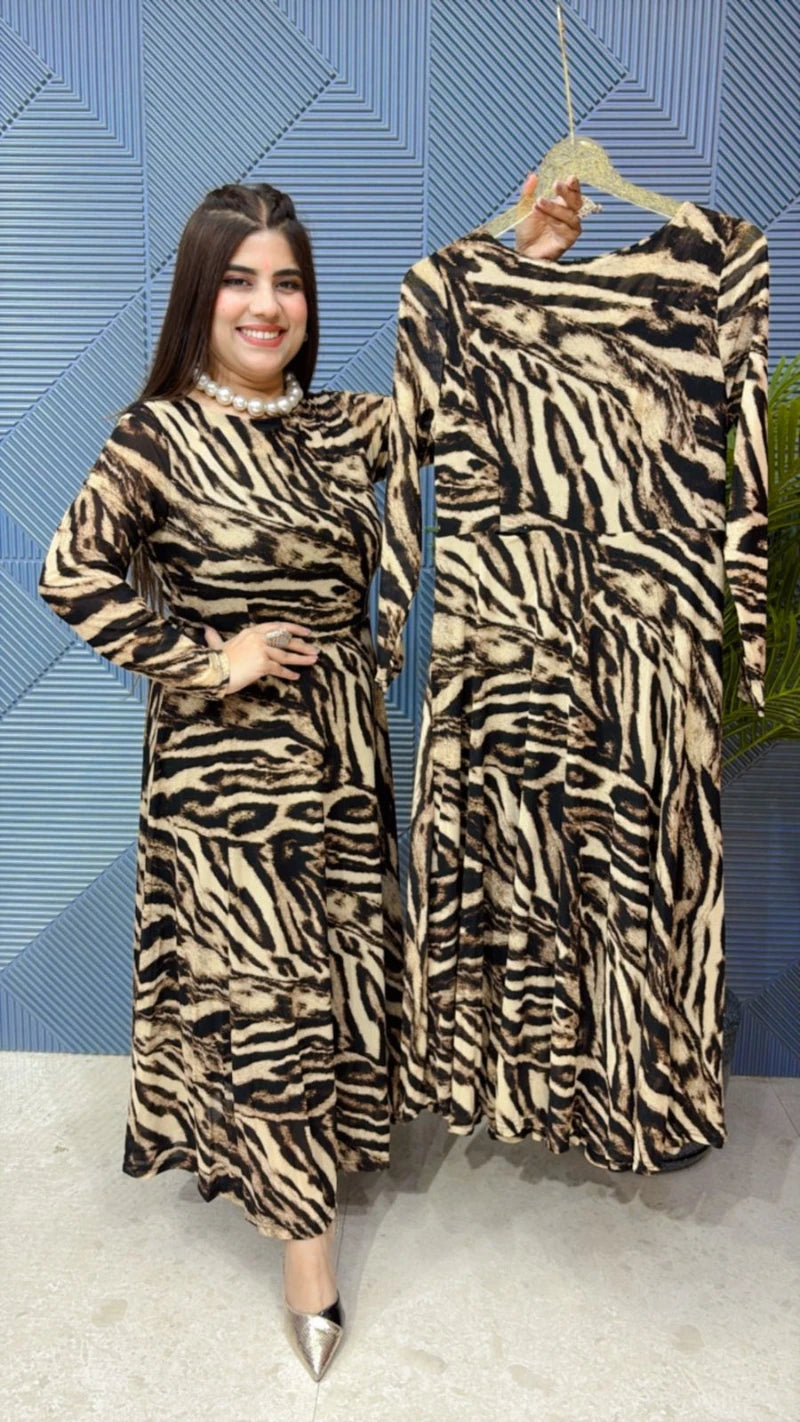 PREMIUM POWERNET LEOPERD PRINT DRESS WITH BELT GGR1890