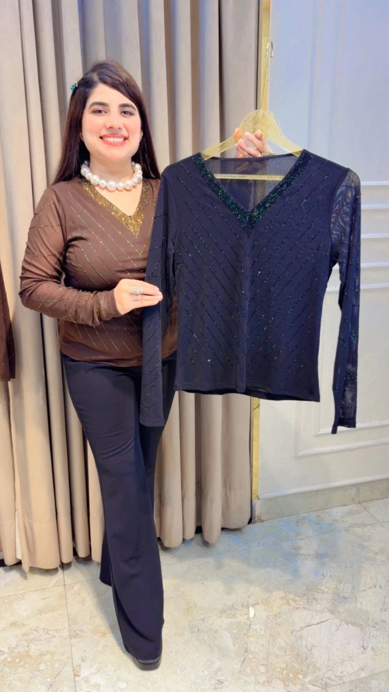 This BEAUTIFUL POWERNET TOP WITH SWAROVSKI WORK AND STRACHABLE FEBRIC (LENGTH: 21-22) Approx is perfect for the season . The TOP beautifully to create a versatile and stylish outfit. your WINTER wardrobe with this luxurious addition, adding a touch of sparkle and charm to any occasion. ( DELIVERY DAYS WITHIN: 10-12 DAYS).