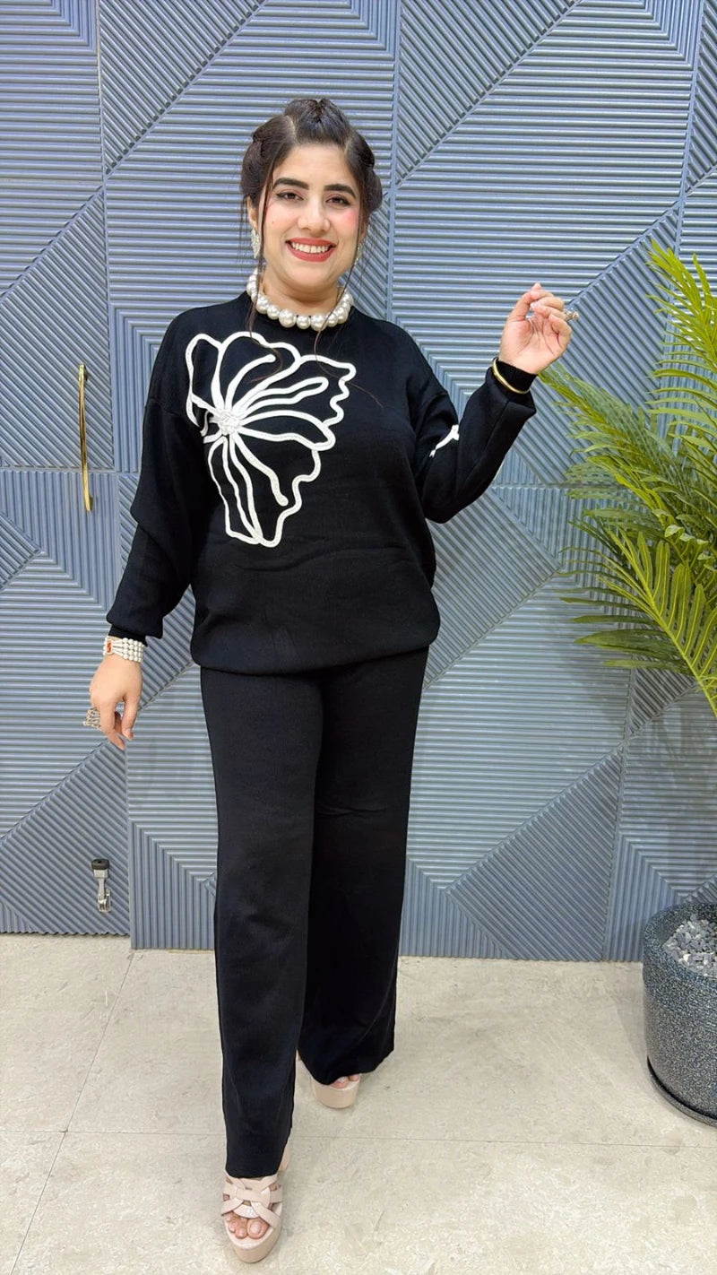 This BEAUTIFUL CO-ORD FOR PRE-WINTER ( TOP LENGTH: 27-28, BOTTOM LENGTH;40-41)Approx is perfect for the season . THE CO-ORD SET beautifully to create a versatile and stylish outfit. your summer wardrobe with this luxurious addition, adding a touch of sparkle and charm to any occasion.