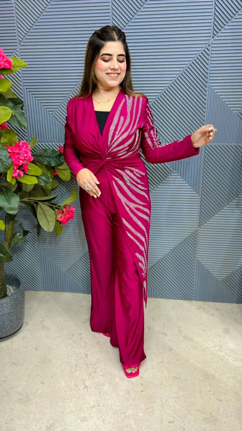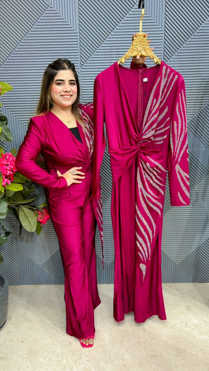 Indulge in luxury with our Premium Quality Jumpsuit GGR555. Designed with an expert touch, this partywear piece is available in sizes ranging from S to XXL. Elevate your style and stand out in every room with our designer jumpsuit.