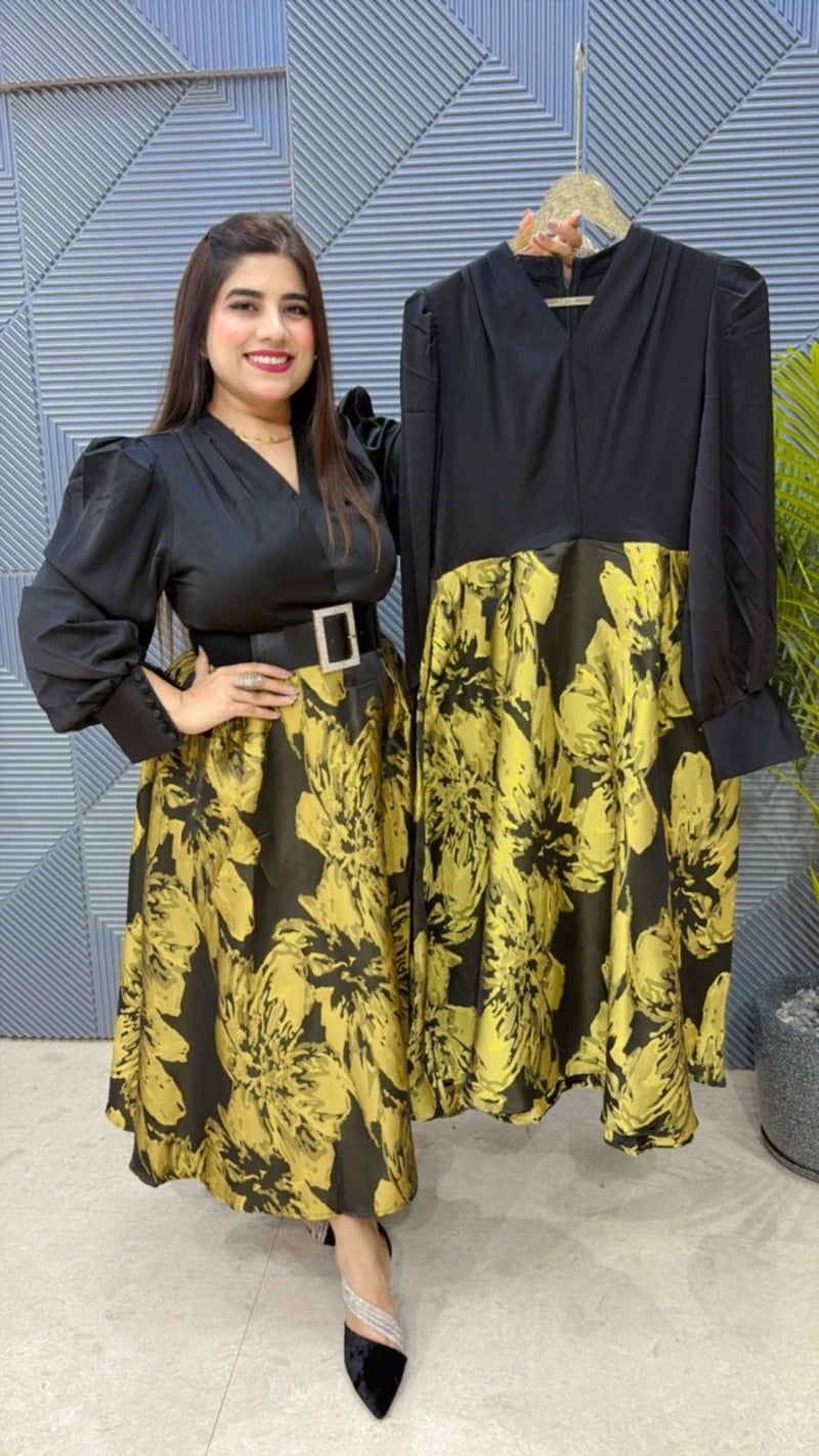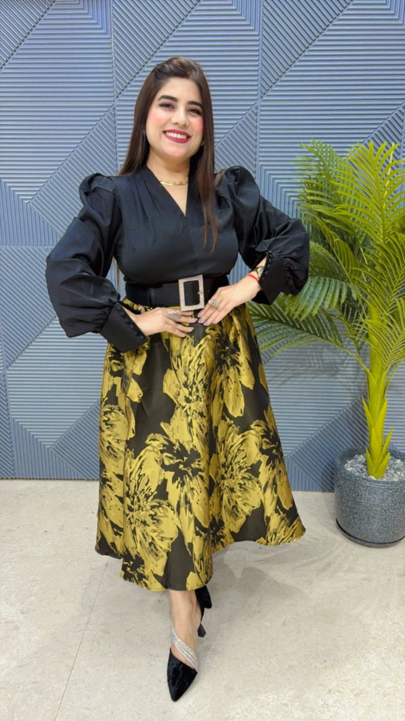 PREMIUM SETON FEBRIC DRESS WITH BELT GGR2003